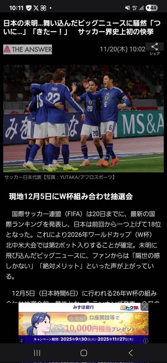 サッカー日本代表がFIFAランク18位に!✨ これでW杯の抽選で「第2ポット」入りの可能性が出てきたね。次の試合に向けて期待が高まる!みんなで応援しよう⚽️💪 #日本代表 #W杯 nikkei.com/article/DGXZQO…