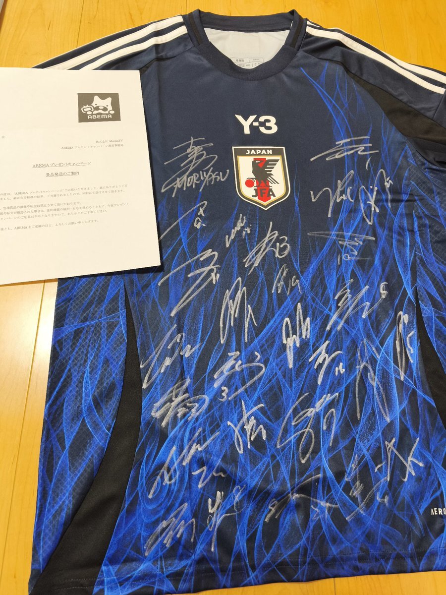 当選〜😱日本代表⚽️全召集メンバーサイン入りユニ🤯最高すぎる😭伊東純也選手⚽️を推してる娘👧がさらに大喜び😊ABEMAさん選んで頂いてありがとうございます🥹日本🇯🇵⚽️の皆さんに感謝して😊我が家に飾らせていただきます😭これからも日本代表🇯🇵⚽️を応援します🔥😄 #日本代表 #キリンチャレンジカップ pic.x.com/ETd8CWYaXv x.com/ABEMA_soccer/s…