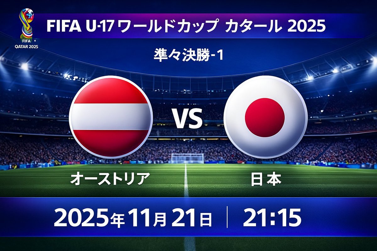 🇶🇦 FIFA U-17 ワールドカップ カタール 2025 準々決勝-1 ⏰ 本日21:15キックオフ 🇦🇹オーストリア vs 🇯🇵日本 日本は久保 光希・齋藤 康太・吉田 琳空ら若きタレントに期待🔥 スマホ視聴可能で移動中でも観られます📱⚽ 👇こちらから視聴 amzn.to/4oPK0Qi #PR #日本代表 #U17