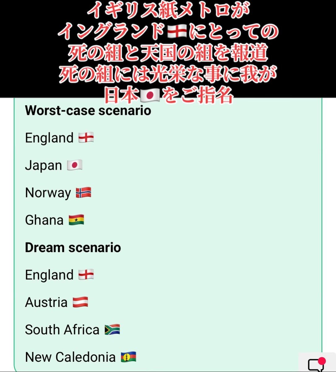 イギリス紙メトロが イングランド🏴󠁧󠁢󠁥󠁮󠁧󠁿にとっての 死の組と天国の組を報道 死の組には光栄な事に我が 日本🇯🇵をご指名 #日本代表 #ワールドカップドロー #イングランド代表 #死の組 @jfa_samuraiblue @England pic.x.com/pim7V4KP35