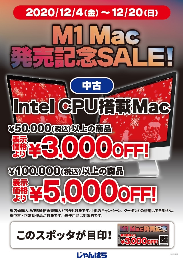 【M1Mac発売記念Macセール】 中古Macの大特価セールを実施しています! intel CPU搭載の中古Macがなんと 50,000円以上の商品 → 3,000円引き 100,000円以上の商品 → 5,000円引き ★★★12/20まで★★★ #じゃんぱら #日本橋3号店 #Mac pic.x.com/Wspjdvf2hl