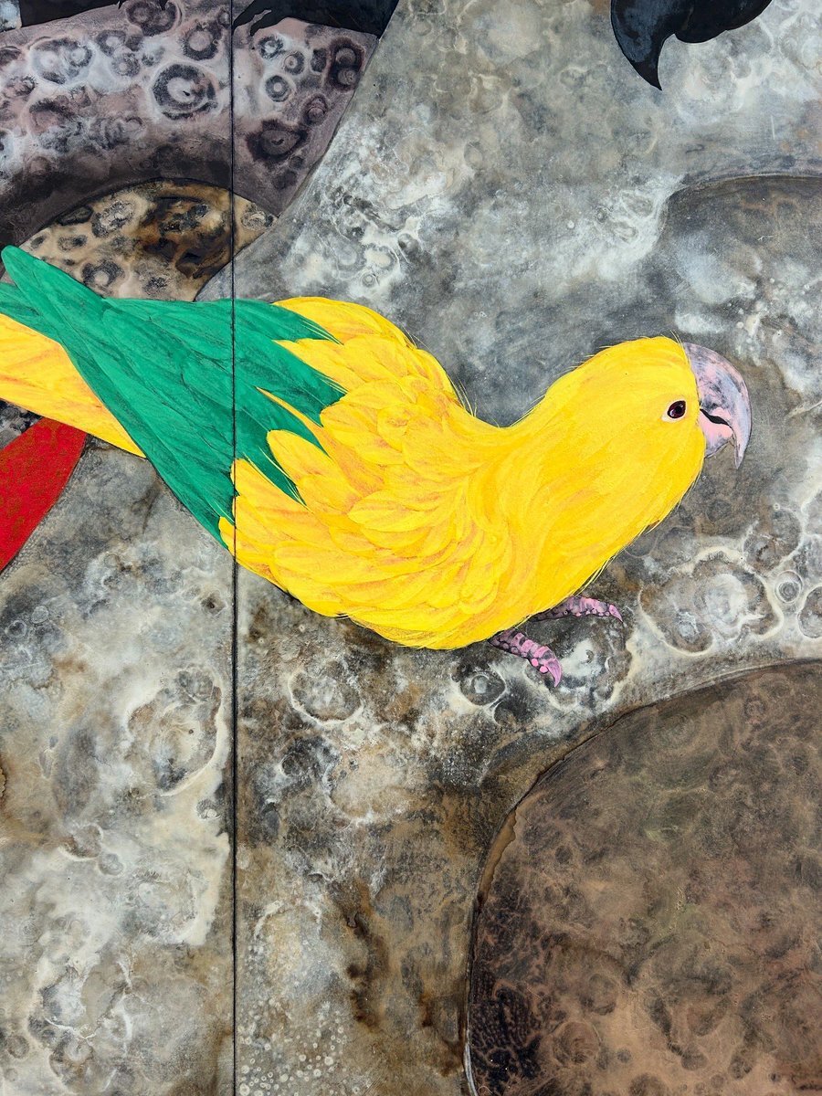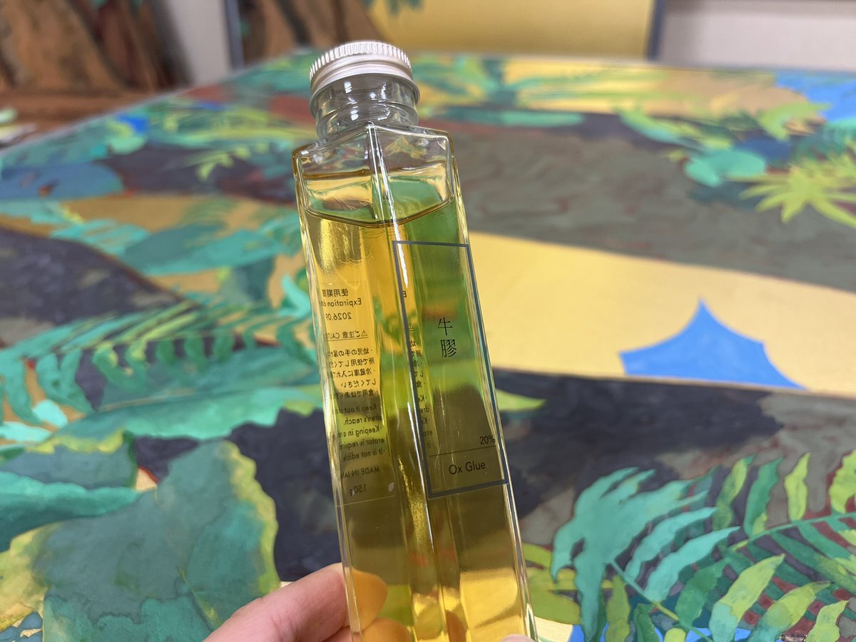 進行中の襖絵と新しい画材🎨 天然絵具or無鉛絵具(酸化による変質が少ない絵具)かつ定着しやすい細かい粒子の絵具にこだわって制作していたが、さすがに色数に制限がありすぎてしんどい、、 そこで最近、粒子の粗い絵の具でも定着しやすいという牛膠をPIGMENT TOKYOで仕入れた #日本画 pic.x.com/C4OWBC4Dba