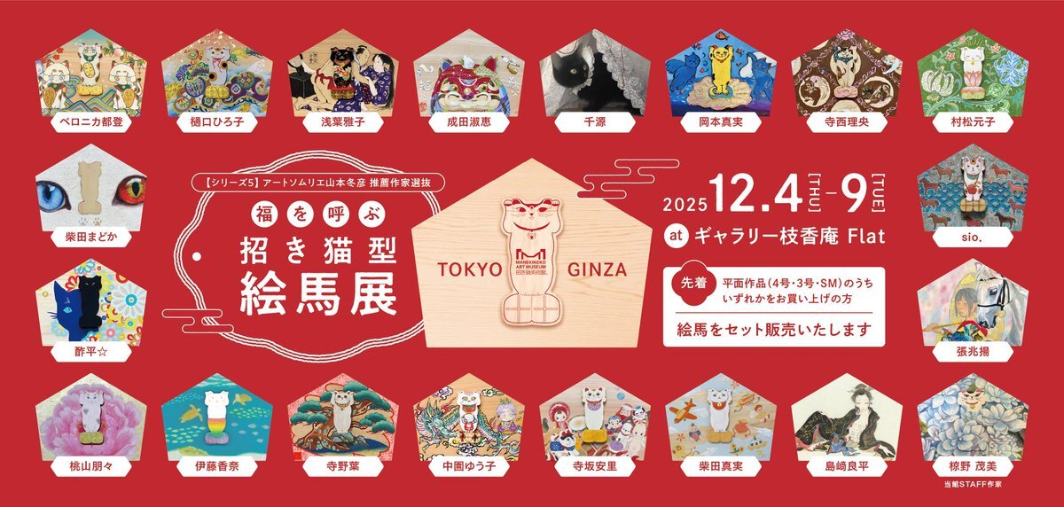 銀座のギャラリー枝香庵flatでの招き猫展に参加します! 12/4〜9です。 絵馬と合わせて新作3点です。どうぞ宜しくお願いします。 #絵馬 # # #桃山朋々 #日本画 pic.x.com/YDC7jjY2WL