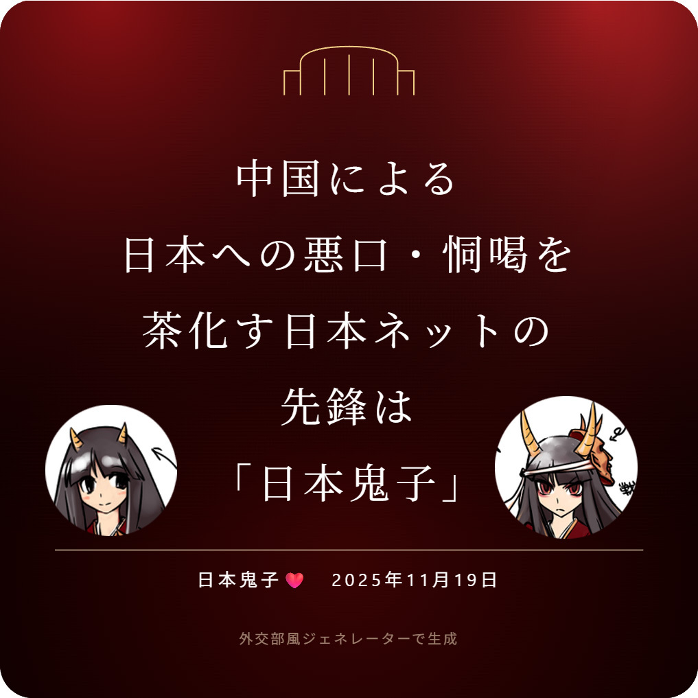 定期的にオモチャを投下してくれるお隣の国。 流石です。 @ChnConsul_osaka @MFA_China #中国外交部 #大喜利大会 #大喜利 #日本鬼子 中国外交部ジェネレーター 📷ihara.taisyo.jp/mfa-china-gene…