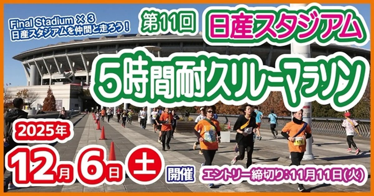 今週の土曜日! #猫ひた 月曜日としては2回目の挑戦、『日産スタジアム5時間耐久リレーマラソン』42.195kmリレーの部に参戦す🏃♂️ MC村上幸平さん、大矢、田倉、真田、照井アナ、そして参加できない真修の代わりにスペシャルゲストで🏍ブルンブルン 会場は入場無料! 応援よろしくお願いします!!