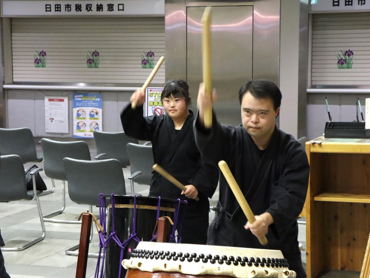 日田市手をつなぐ育成会」が、令和7年度「障害者の生涯学習支援活動」に係る文部科学大臣表彰(功労賞)を受賞したことを市長に報告しました💐 市役所1階ロビーで浦和太鼓の演奏を披露して頂き、力強く温かい音色がロビーいっぱいに響きました😊 #日田市 #日田 #日田市手をつなぐ育成会 #浦和太鼓 pic.x.com/qCT14PTEKX