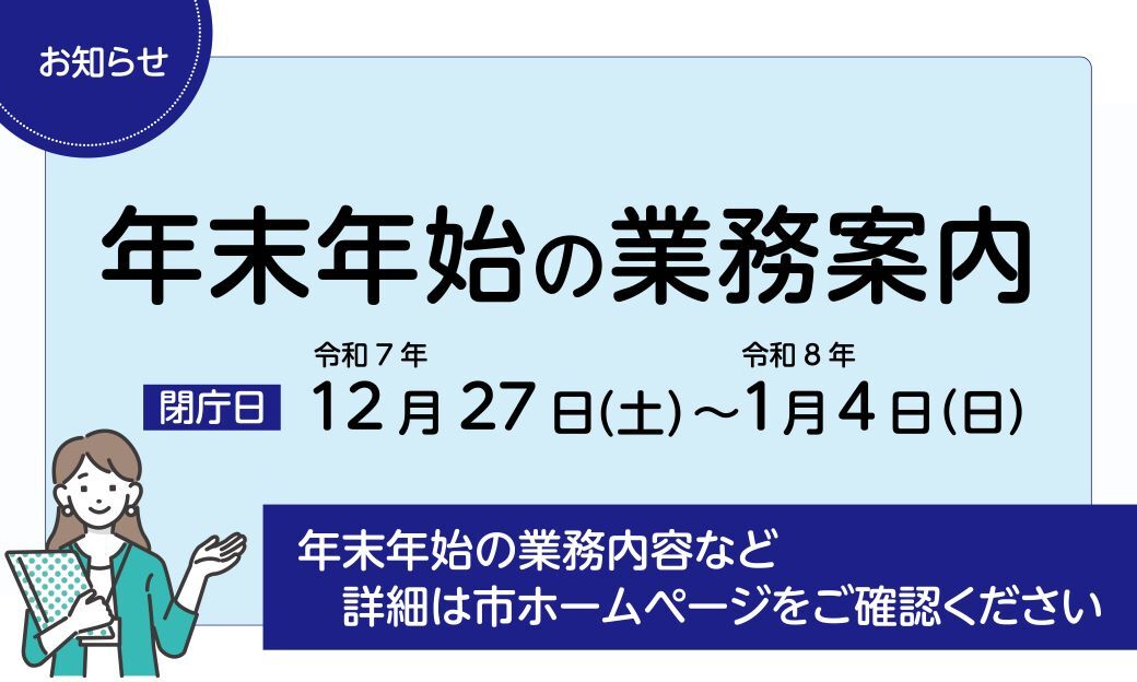 📌日田市役所 年末年始の業務案内について 市役所、各振興局・振興センターは、12月27日(土)から令和8年1月4日(日)まで閉庁します。 閉庁期間中の業務案内については、市ホームページをご確認ください⬇ city.hita.oita.jp/soshiki/somubu… #日田市 #日田 #大分県日田市 #hita #年末年始 #よいお年を pic.x.com/14XPP2L9KA