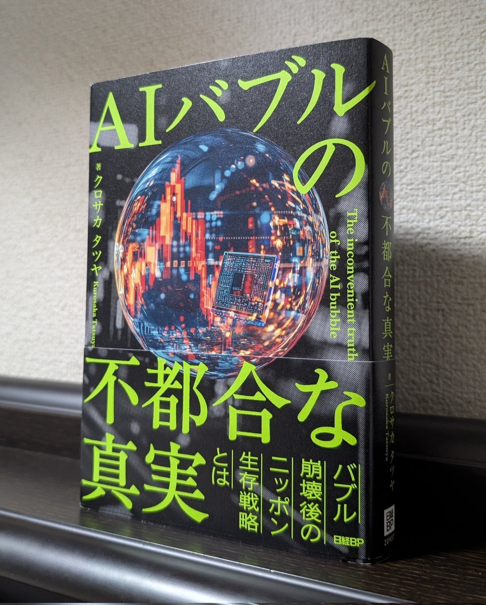 書籍『AIバブルの不都合な真実』(著者:クロサカ タツヤ / 発行:日経BP / 2025)。 #AIバブルの不都合な真実 #クロサカタツヤ #日経BP pic.x.com/MpEYEA77OW