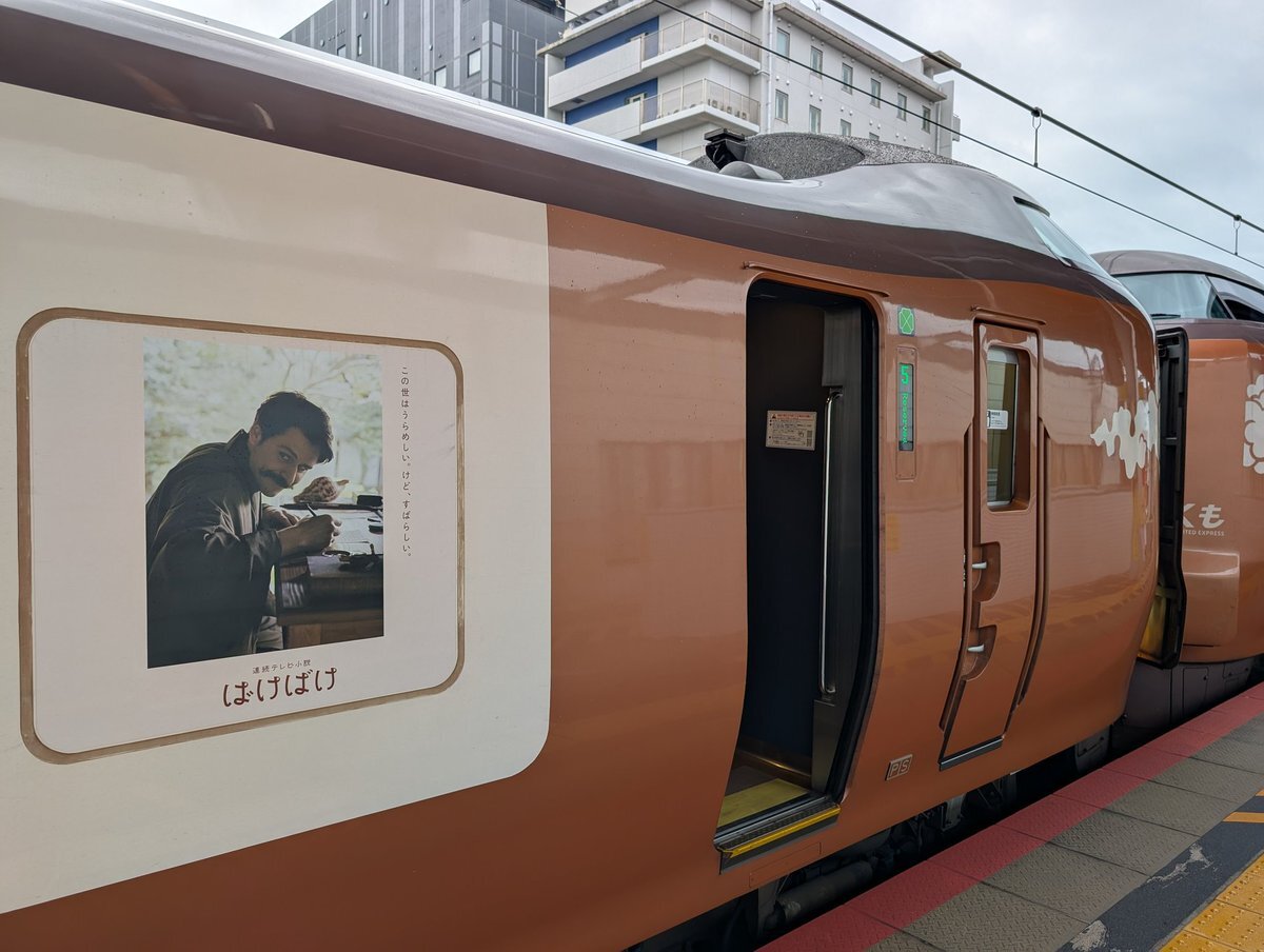 #サンロードなかまち商店街#旭日 さんのお店があり、試飲を。200円で6種類のお酒が楽しめます。#松江城#しまね地酒フェア をやってるとのことで #やくも で早速移動。やくもも #ばけばけ に乗っかってました #出雲市 pic.x.com/sluZ5FMzfB