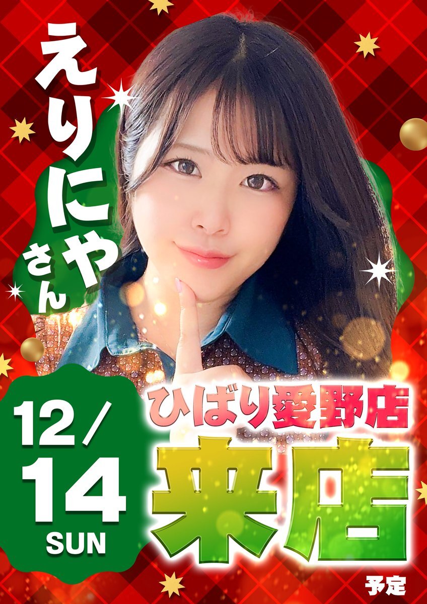 🍎#明日 12月14日 (日)🍎 ✧••┈┈┈┈┈┈┈┈┈┈┈┈┈••✧ 📢#えりにゃ さん✨ご来店✨ 【 @erinya_0426 】 ✧••┈┈┈┈┈┈┈┈┈┈┈┈┈••✧ 【#抽選時間 9:40~】 さあ #えりにゃ 様のご登場です🔥 来週のスケジュールも要チェック✅ 明日もFIGHT一発🔥 #リポDも取扱い中w pic.x.com/vBva3eVaNu x.com/erinya_0426/st…