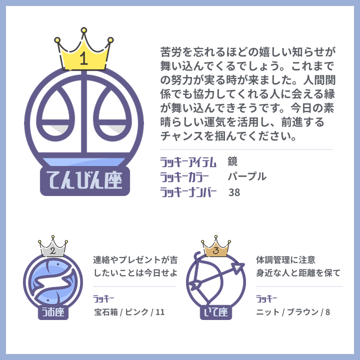 今日の運勢✨星座ランキング(11/21) 毎朝配信🌅詳しい占いはこちら⏬ forceteller.jp/calc/daily/d_l… 1位 てんびん座 2位 うお座 3位 いて座 4位 おとめ座 5位 おひつじ座 6位 かに座 7位 みずがめ座 8位 しし座 9位 ふたご座 10位 さそり座 11位 やぎ座 12位 おうし座 #今日の運勢 #星占い pic.x.com/jALJ7SbAVz