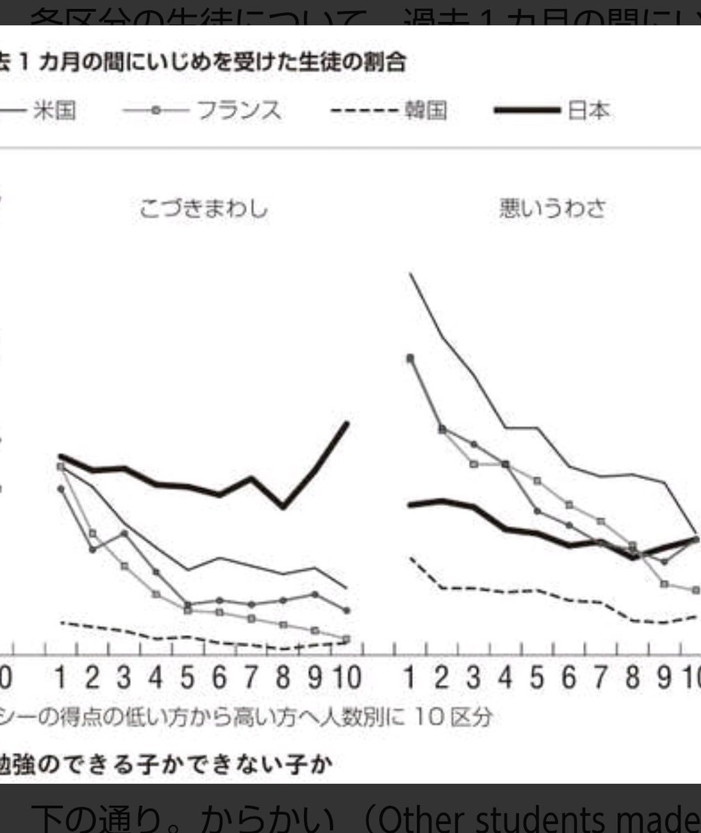 "日本のいじめは世界と真逆? 「できる子」や「恵まれた家庭の子」がいじめられる特異な現実 #本川裕『統計で問い直すはずれ値だらけの日本人』#星海社 嘘!統計を読めてない。小突き回しは成績分類8までは成績良い方が受け難い。9から急に上がってる。本川は出鱈目書くな! l.smartnews.com/m-6I5Pv6nK/1P0… pic.x.com/8At7tDBe0J