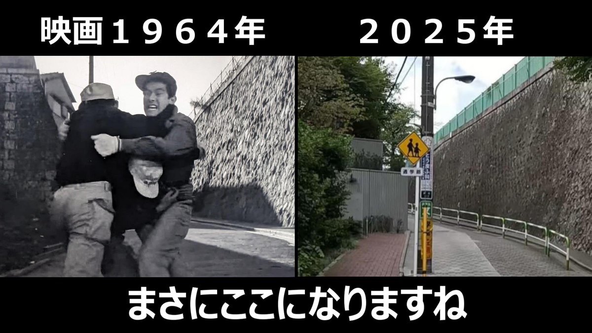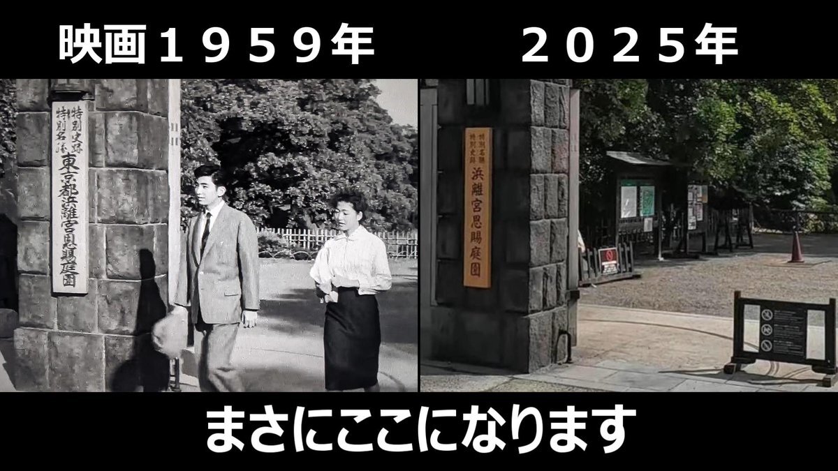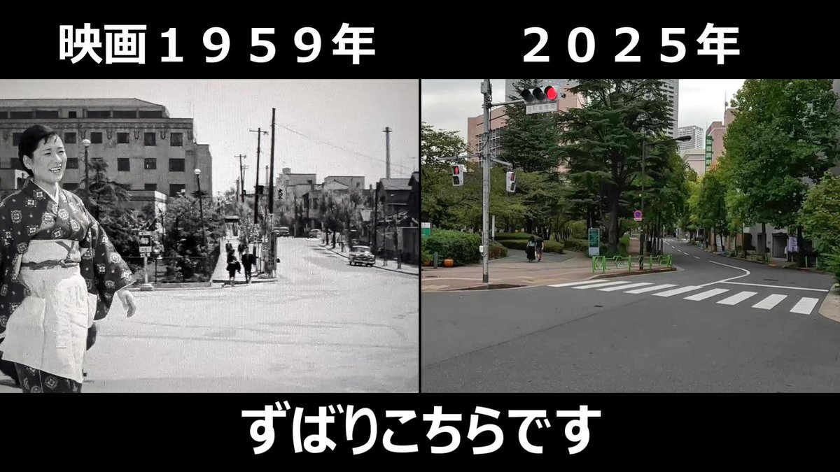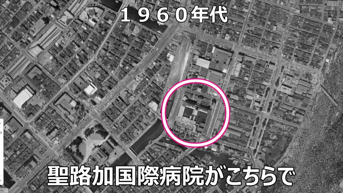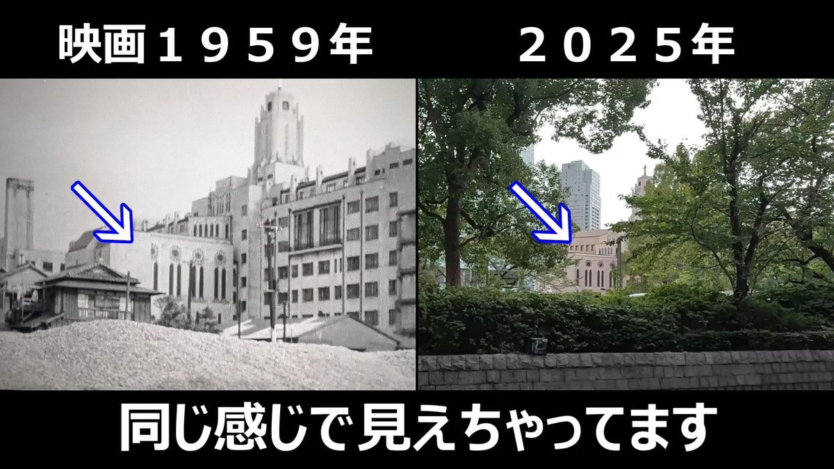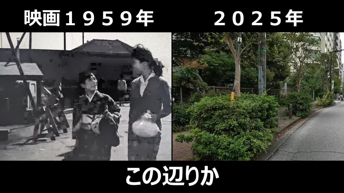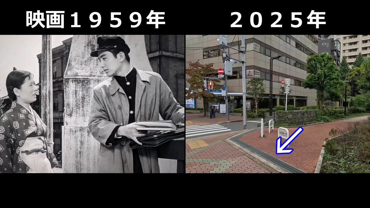 #おヤエのあんま天国 #映画ロケ地 #若水ヤエ子 #聖路加国際病院 映画1959年➡現在 おヤエさんが歩いてた場所と暁橋 背後には聖路加国際病院が見えてた 東京都中央区明石町、暁橋跡付近 pic.x.com/TM3y2TxoM8