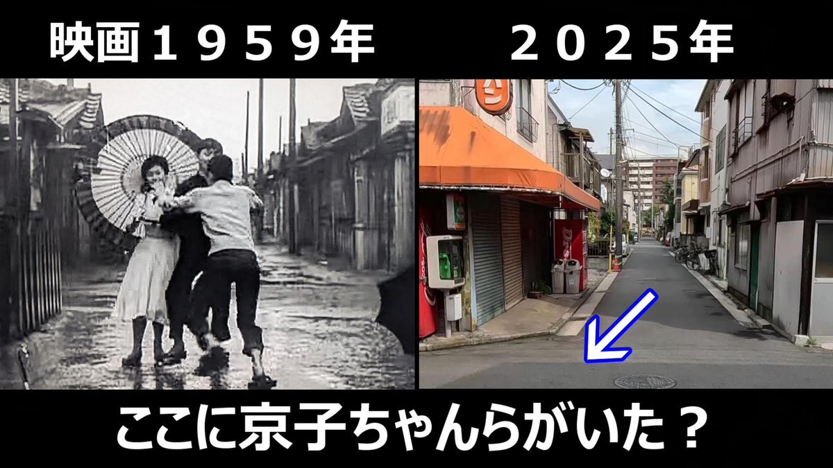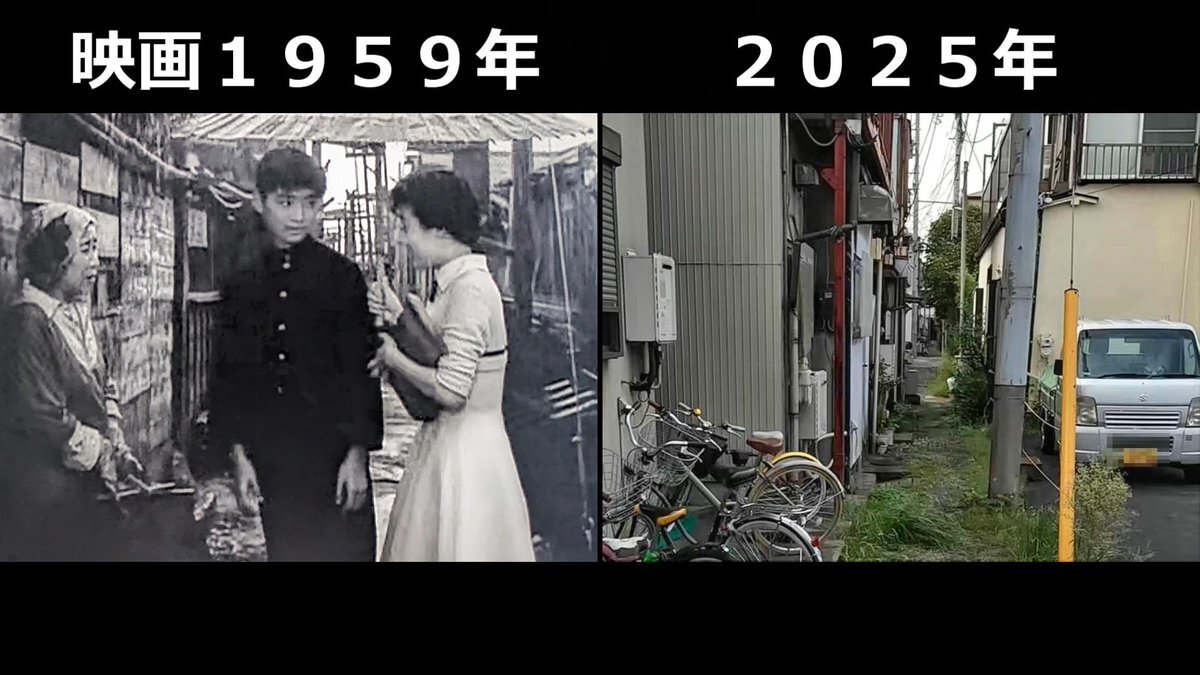 #愛と希望の街 #映画ロケ地 #富永ユキ 映画1959年➡現在 京子ちゃん(富永ユキ)が正夫君の家を訪れるシーンで出てきた安善湯近くのシーン 神奈川県横浜市鶴見区寛政町、安善湯があった付近 pic.x.com/siUpOxMBsd