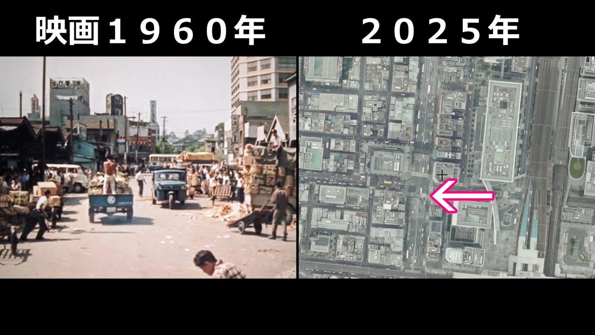 #明日晴れるか #映画ロケ地 #石原裕次郎 映画1960年➡現在 オープニングで出てきた神田青果市場 東京都千代田区神田1丁目 神田青果市場があった場所にUDXがある pic.x.com/EhQNO1ulzS
