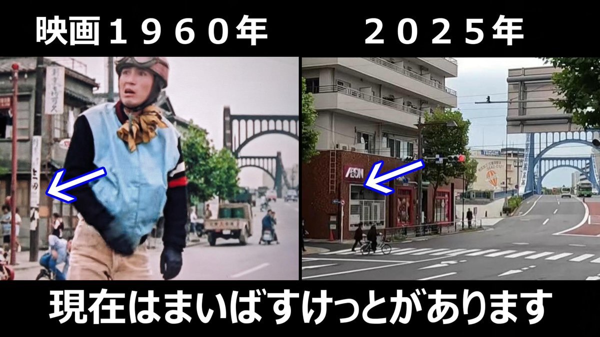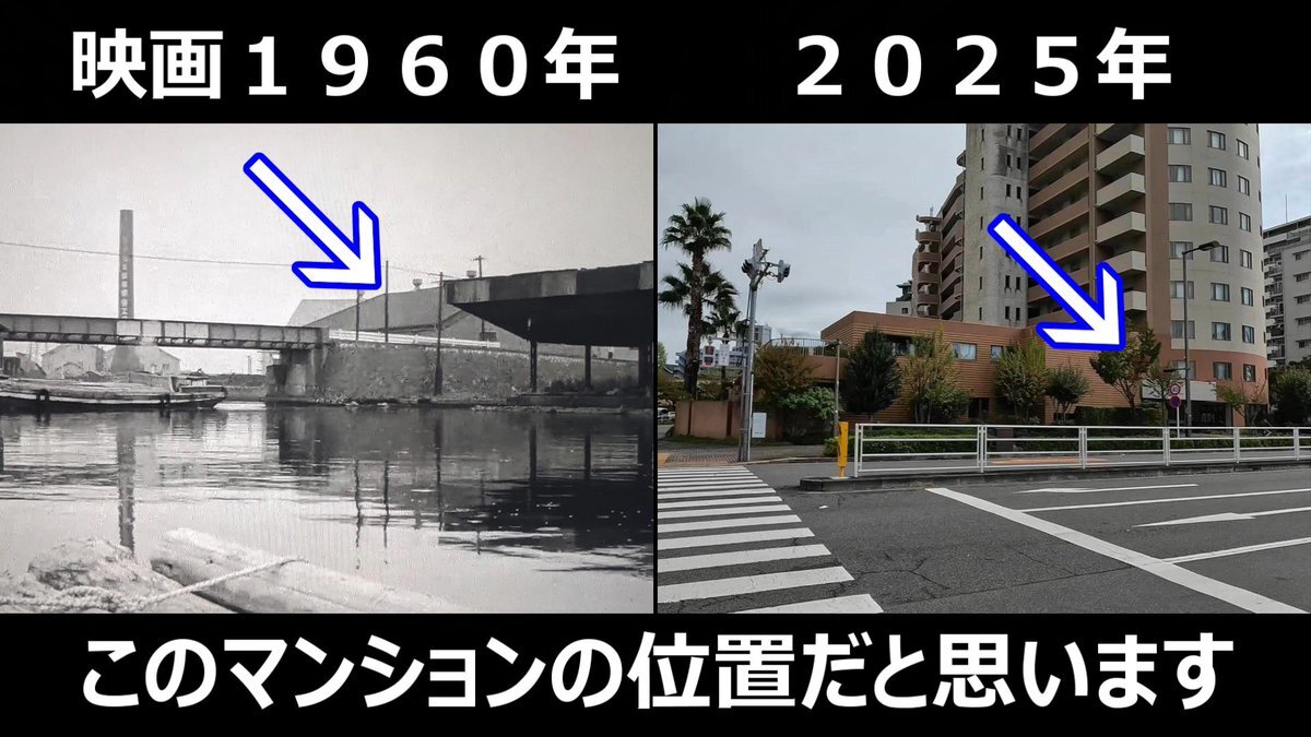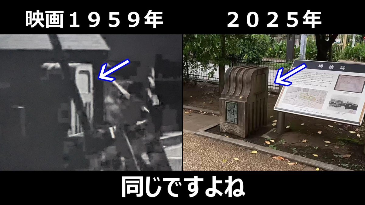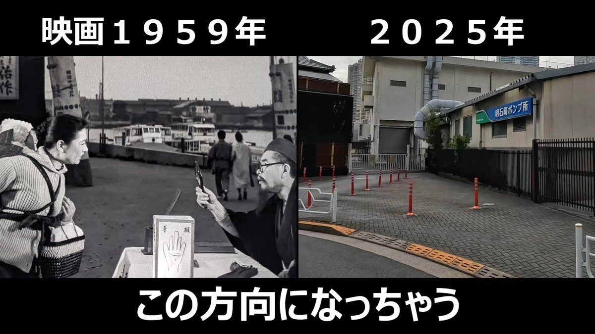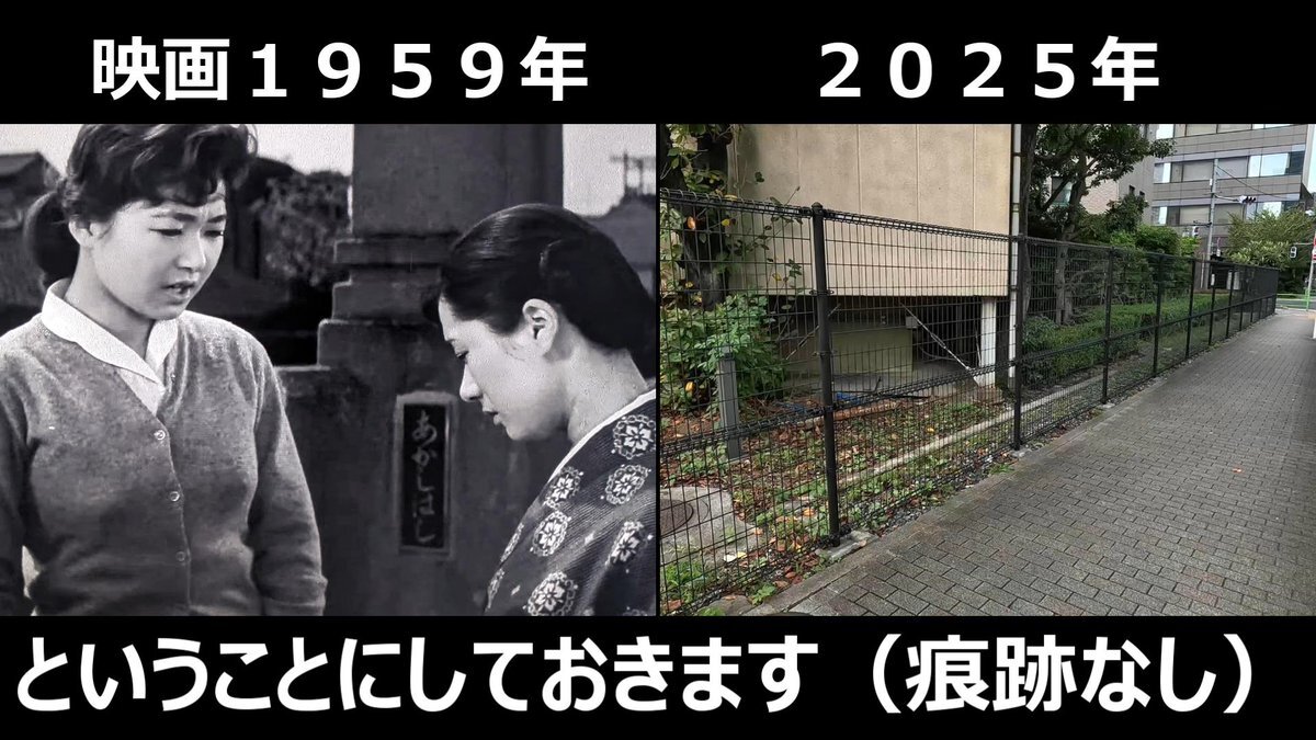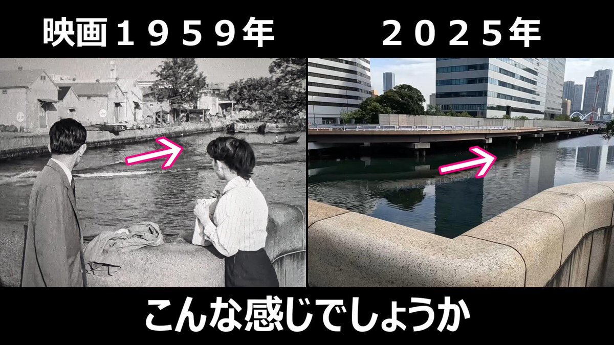#おヤエのあんま天国 #映画ロケ地 #若水ヤエ子 #中村万寿子 映画1959年➡現在 おヤエさんと千鶴子さんが渡ってた橋 東京都中央区明石町、境橋 現在は面影もなし! pic.x.com/tDmi9YfoXd
