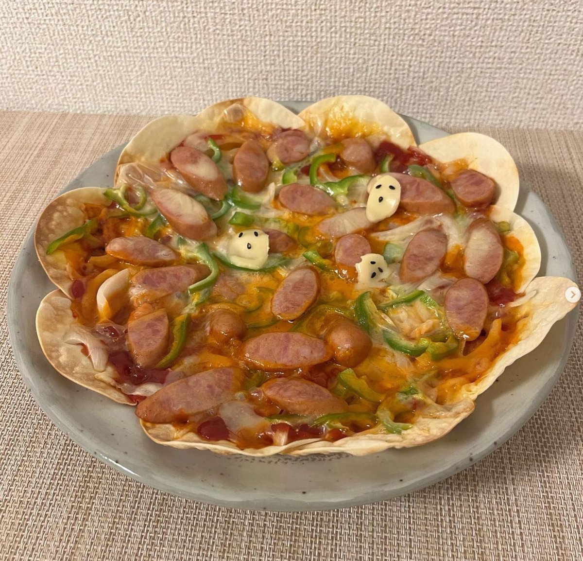 餃子の皮を重ねてハロウィン仕様のピザに🎃 ご自宅でハロウィンパーティーを楽しんで🥟 #井辻食産 #春巻き  #餃子の皮 #春巻きの皮 pic.x.com/VXDb3QzC5c