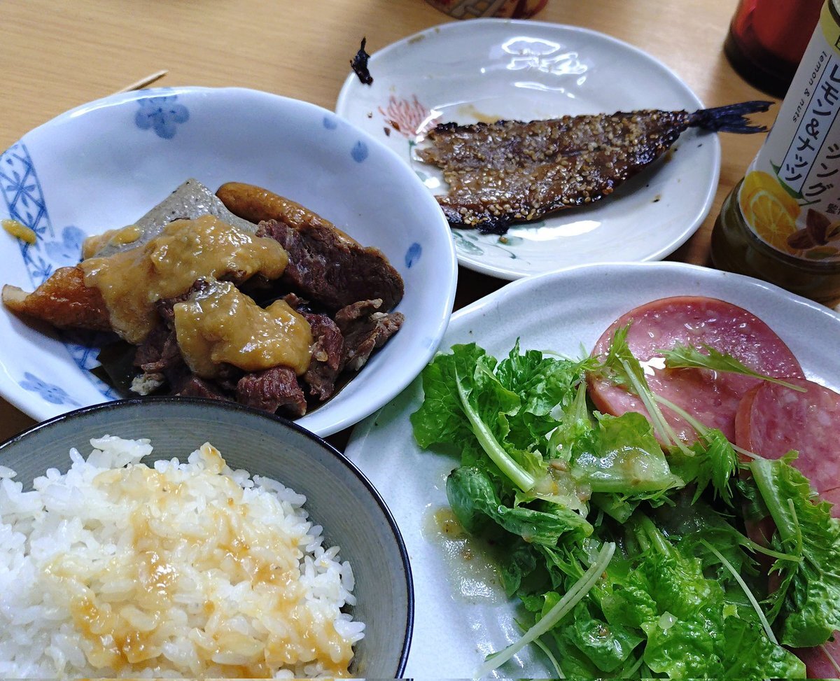 昨日の晩めし、 生ソーセージとぶなしめじとインゲンのトマトカレー🍛 ホタテとゆで卵のサラダ🥗 熱でフラフラしながら作って、妻子は食べてたけど自分はほとんど食べずに撃沈… 今日はリベンジでこれ食べよう #晩めし #おうちごはん #家庭料理 pic.x.com/1BFqpoKerQ