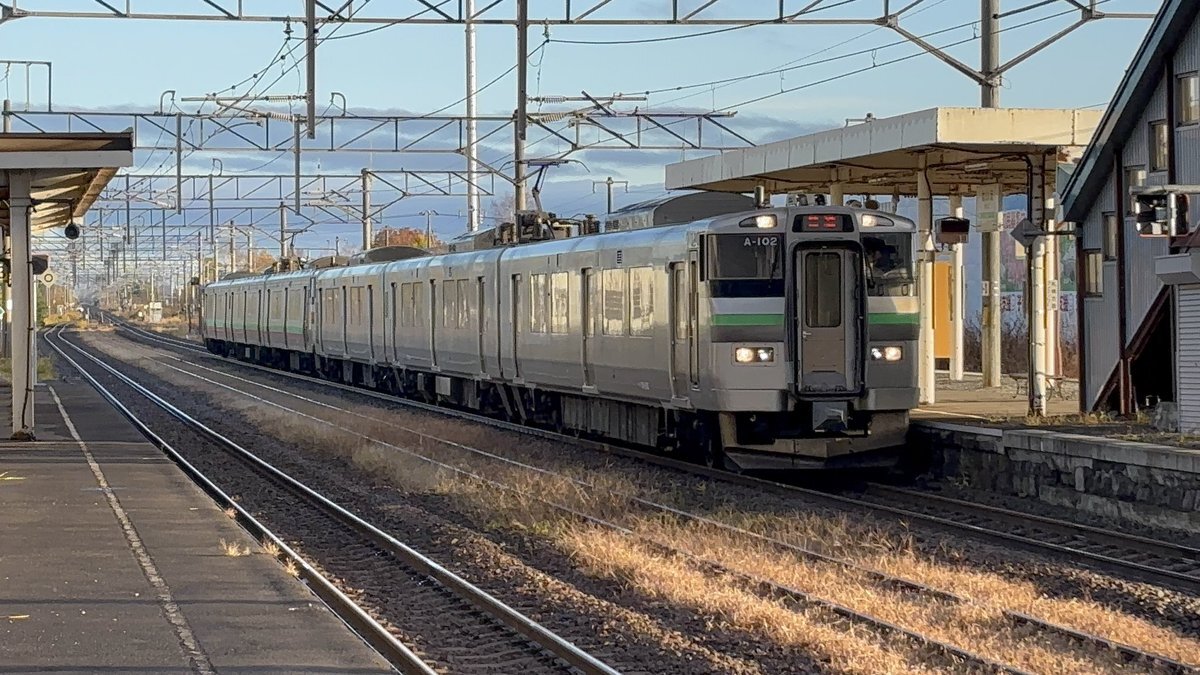 733系0番台 B-111編成 三菱IGBT-VVVF [千歳線]普通 北広島行 0番台で少数の三菱VVVF搭載車 12月6日撮影 #733系 #733系0番台 #普通列車 #新札幌駅 #三菱IGBT #VVVFインバータ pic.x.com/hq1enEAXKM
