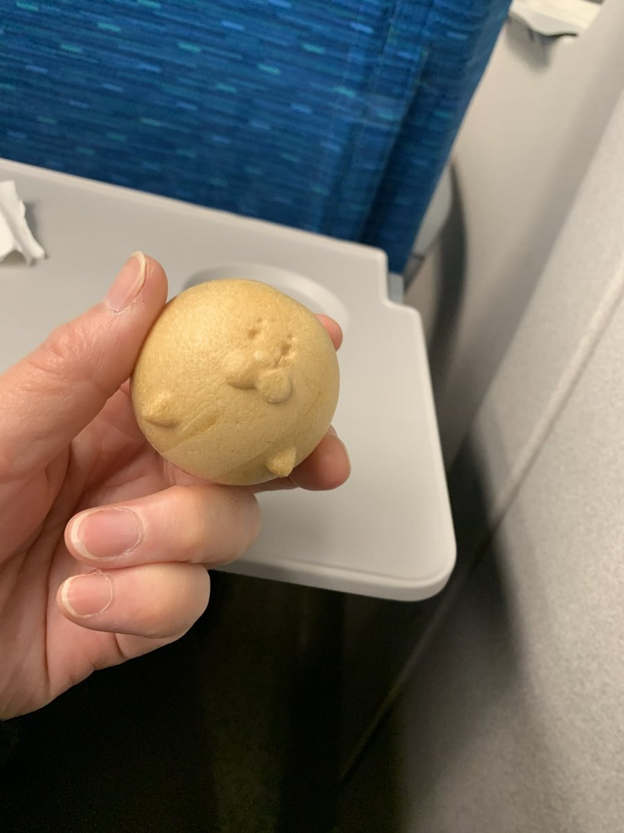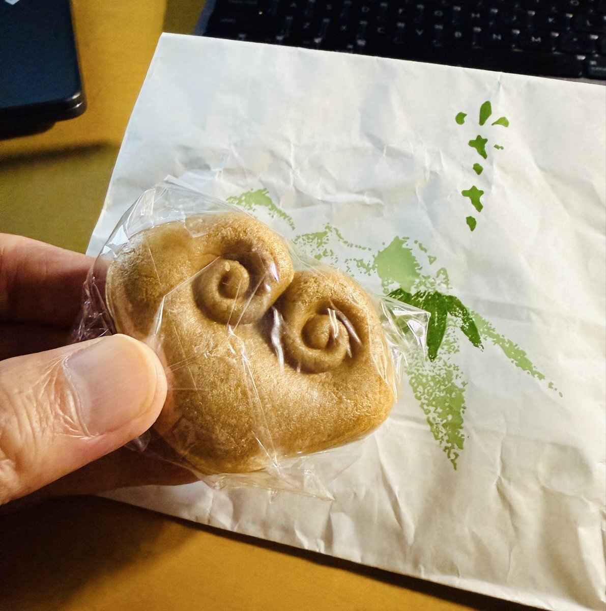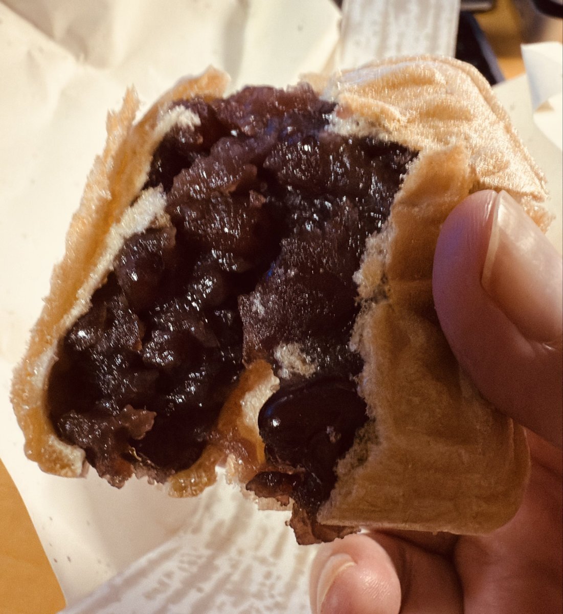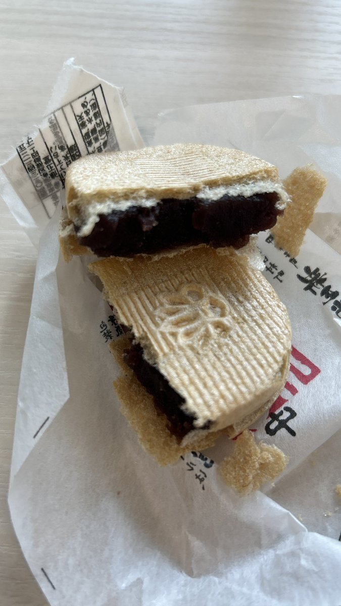 我慢出来ず 新幹線内で 食す。。。。 両面に顔。。。。 シュールだ。。。。。。 ちぃちゃん ありがとうございました。 一口ではあきませんでした。 パーカーがもなかの粉だらけだ。 情け無いぞ。 #喜多見 #美味しい和菓子屋さん #最中 pic.x.com/NdSdnGyq1d