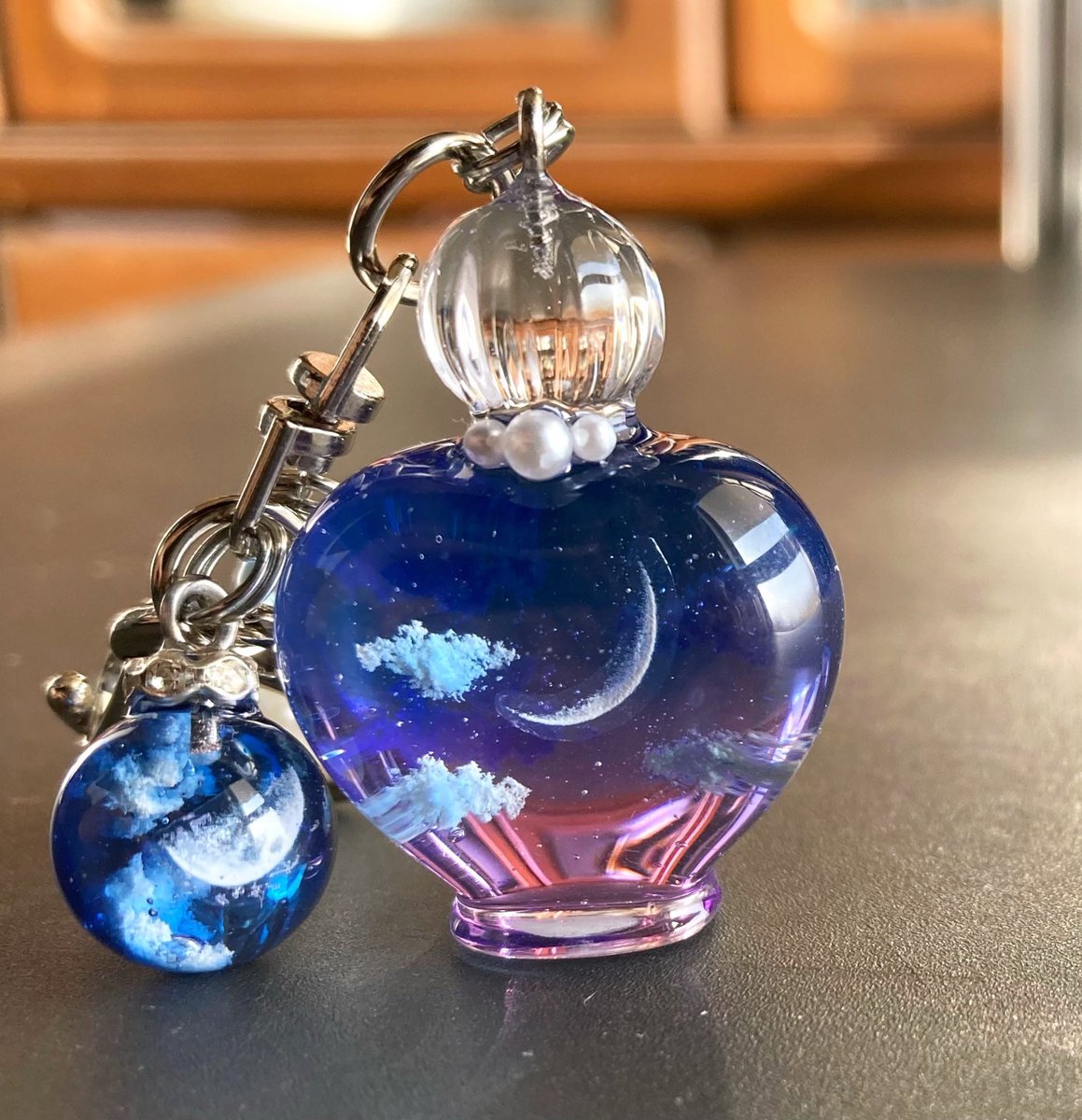 モニター台の引き出しとして使っている 無印良品の整理トレーに ストラップ用パーツを貼り付けて 取手を自作したよ👀 パーツには好きなチャームが付けられるし 引き出しやすくなった〜💘 トレーだから手帳タイムの時はそのまま取り出してポン✊🌟 DIYみたいで楽しいし、 しかも便利になって満足🥰