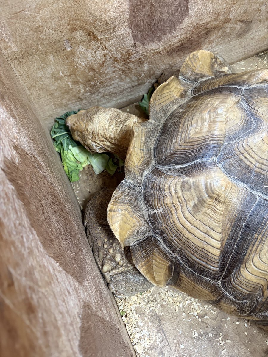 これはケヅメリクガメのボンちゃん。 ごはん中だった。あーこれじゃ大きさが伝わらない…さらに大きくなったねぇ。 #ケヅメリクガメ #月島 x.com/chobi2706/stat… pic.x.com/UBjRG0HcBa