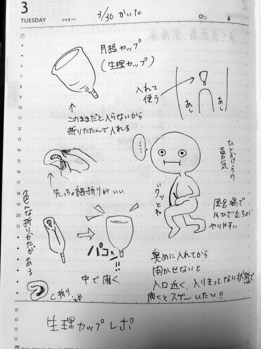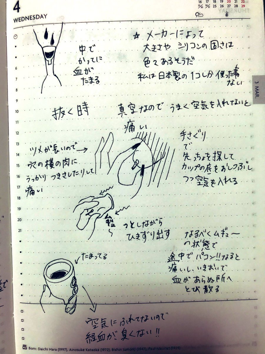 最近使ってる月経カップのレポを描きました 使おうか迷ってる女の人のためになればと思ったけど痛い痛い書きすぎてる気がする けど悪いもんじゃないとおもうよ!! 4日めだけど、ナプキン2枚しか今回まだ使ってないトータルで。もしもの時用に当ててただけ 漏れてない #月経カップ pic.x.com/LHywRbJxKJ