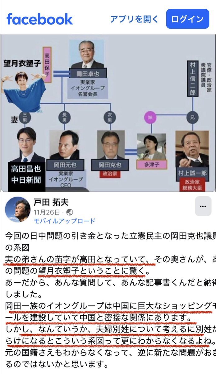 イソコ、弟嫁なんか⁉️ だから善良な日本企業叩いて 中国や韓国に金流すのに手を貸してるんだ⁉️ 😳 今、イオンも日本企業スーパー買収(?)して次々店舗増やしてるよね…😱 #イオン #岡田克也 #岡田一族 #望月衣塑子 x.com/zhenglu2222/st…