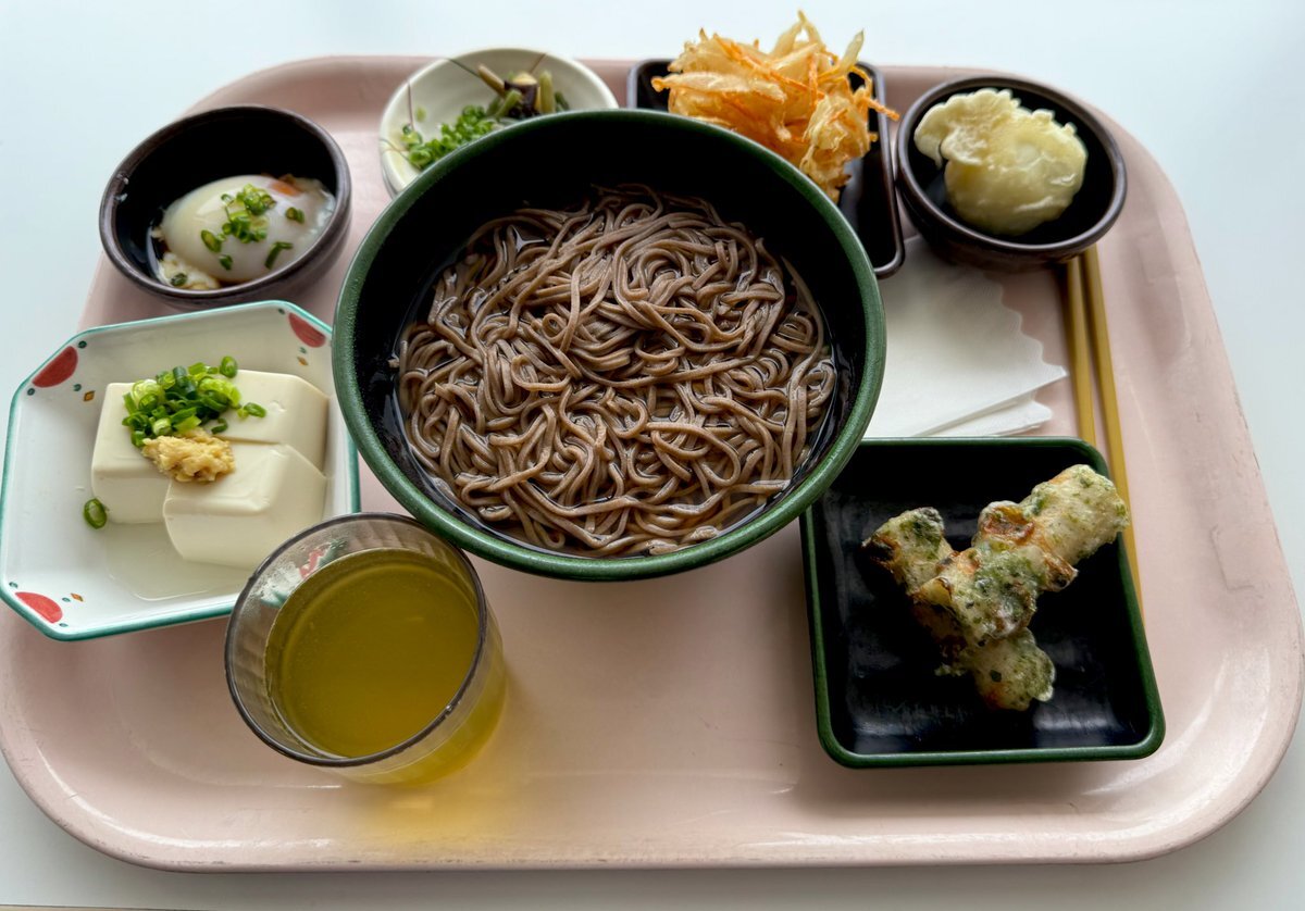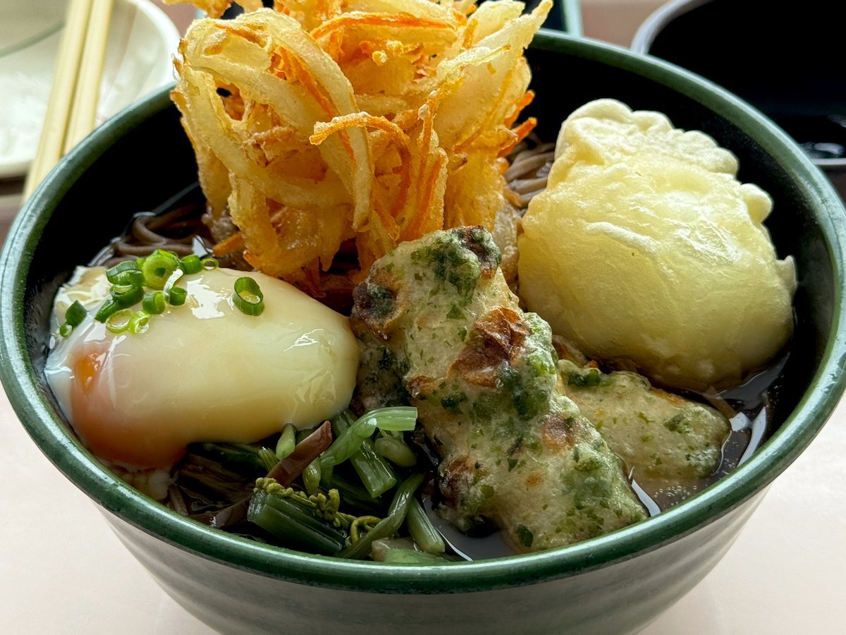 #朝ごはん #お昼ごはん 朝は8枚切り食パンに鶏チャーシューをサンドして食す。 お昼は山菜蕎麦に磯辺揚げと温玉、玉子天、玉ねぎのかき揚げをトッピングしてお菜は冷奴を食す。 七味入れ忘れて汁の味がイマイチだけど美味しくいただきました😋 pic.x.com/I6axkd4tQ1
