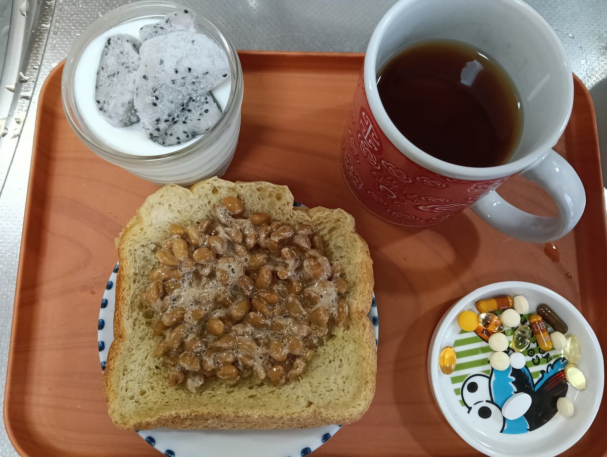 2025/10/24 #朝ごはん ✔紅茶 ✔納豆トースト ✔ヨーグルトとドラゴンフルーツ ✔サプリメント とりあえず納豆食べときゃ大丈夫でしょっ。て考えです😂 #ダイエット記録 pic.x.com/UObDwNwQAQ