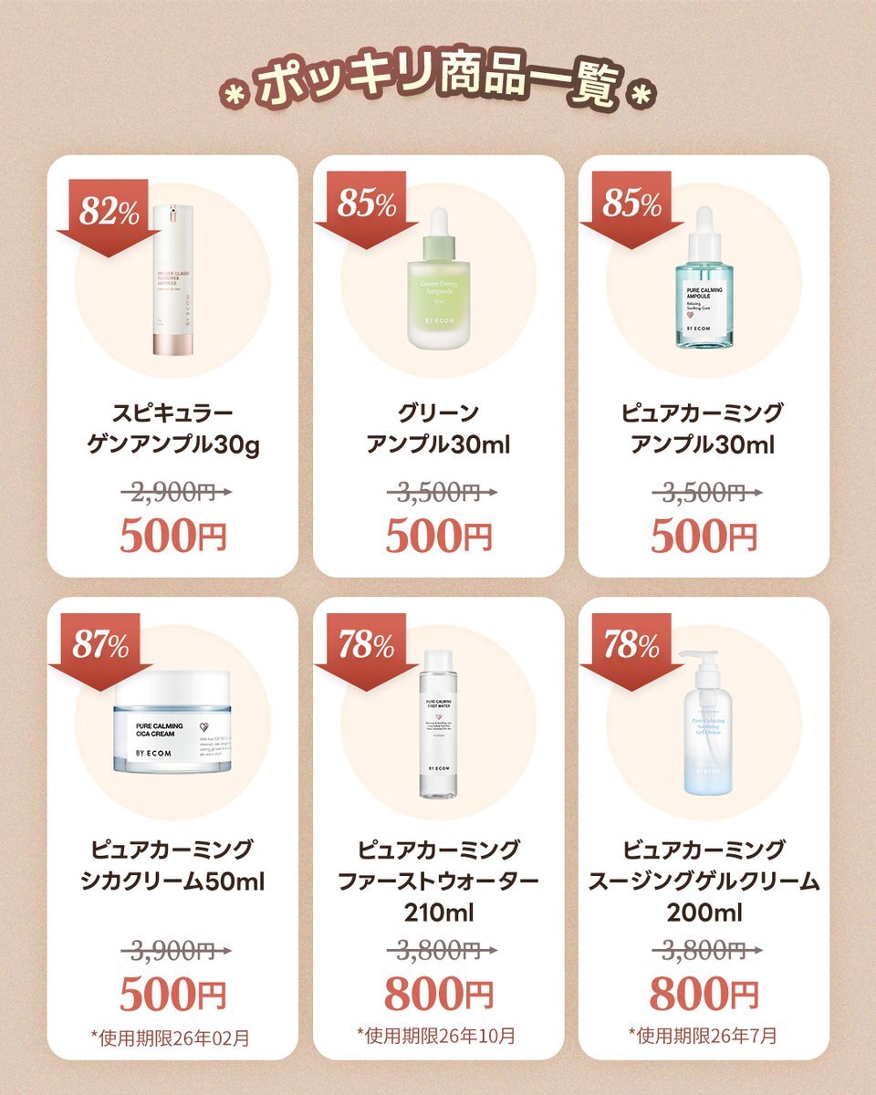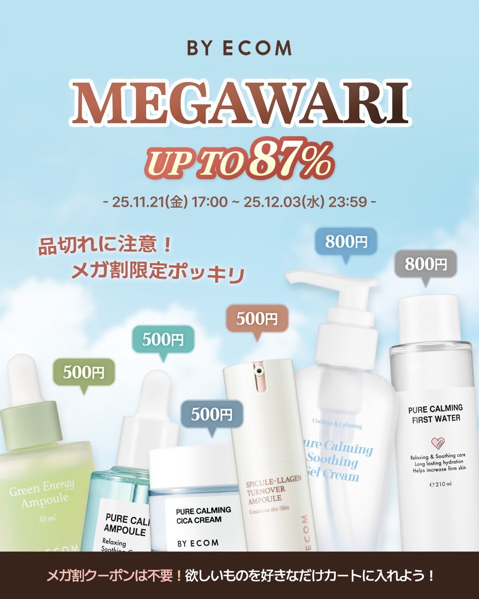 “メガ割”ポッキリ!【最大 87%OFF】 人気のスキンケアアイテム ピュアカーミング、グリーンアンプル、シカクリームが 500円/800円のポッキリ価格はさすがに熱い🔥 数量限定なのでお早めに!👇 qoo10.jp/g/1134061205 #BYECOM #バイエコム #メガ割 #メガセール #特価セール #期間限定セール pic.x.com/rTB4iMiBmI