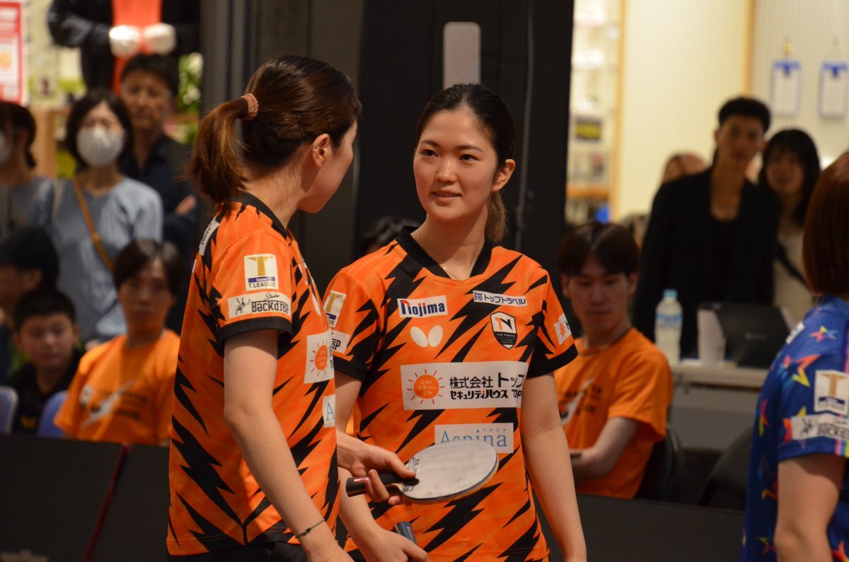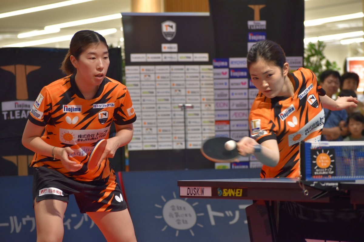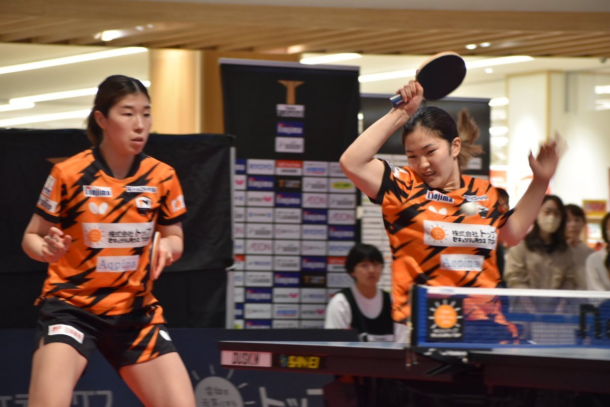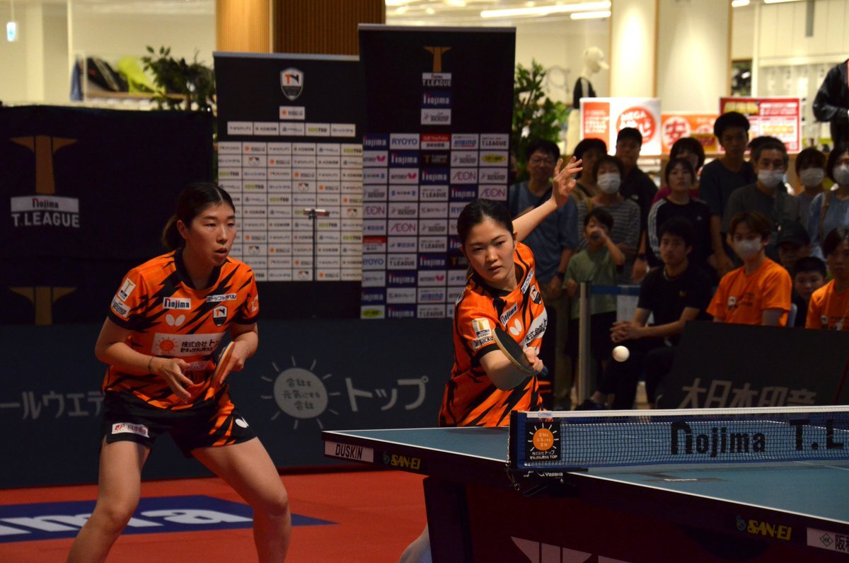 1番のダブルスは #木原美悠 選手と #永尾尭子 選手がペアとなり、#出雲美空 選手と #デンミンイ 選手ペアが対戦! 木原/永尾組が軽快なプレーをみせて勝利をあげました。 @TLEAGUE_PR @TOP_NAGOYA @Kaguyalyze #卓球 pic.x.com/PCRRwBbVrI x.com/TPlus_SBD/stat…