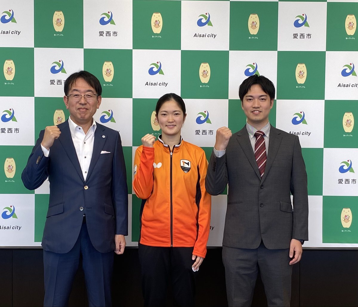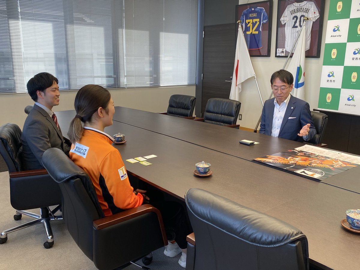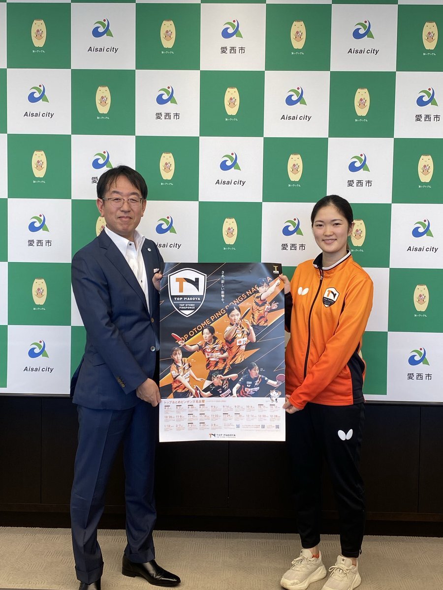 先日、木原監督と #木原美悠 選手が愛西市の日永貴章市長へ表敬訪問を行いました! 記念撮影後、歓談が行われ、とても和やかな雰囲気となりました!✨ 愛西市のホームゲームは11月29.30日に行われます! みなさん是非お越しください🫶 #トップ名古屋 #Tリーグ pic.x.com/sBF5wOh7pj