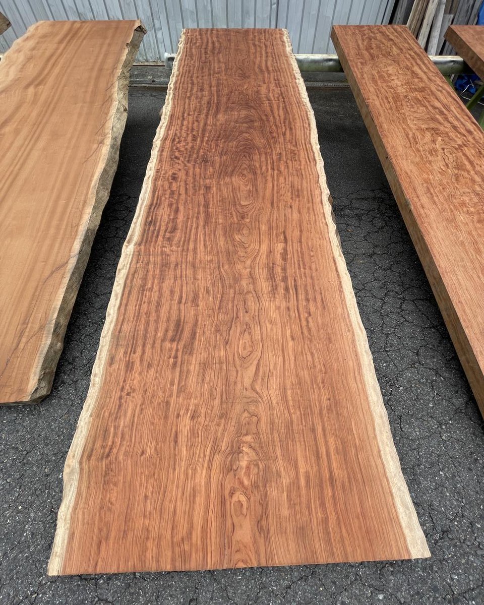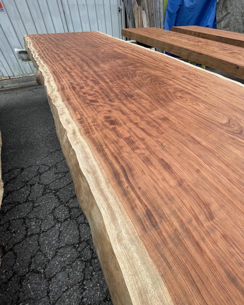 おはようございます🌳 12/10㈬奈良県黒滝村は⛅️ ブビンガの一枚板が仕上がりました ブビンガはアフリカ原産の木で、キラキラとした木目が とても綺麗です✨ #一枚板 #木材 #木工 #インテリア #徳田銘木 #企業公式が朝の挨拶を言い合う pic.x.com/wVTjICfH9d