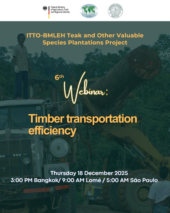 🌳📆 来週18日(木)に、ITTO、ドイツのBMLEH、タイのカセサート大学が #木材 #輸送 に関するオンラインセミナーを開催します。 将来の市場と長期的な環境に対する持続可能性を見据えた革新的な木材輸送の解決策を探ります。 🔗 詳細はこちら: itto.int/ja/events/2025… @BMLEH_Bund @kasetsart_ku pic.x.com/M3fRXxycQE