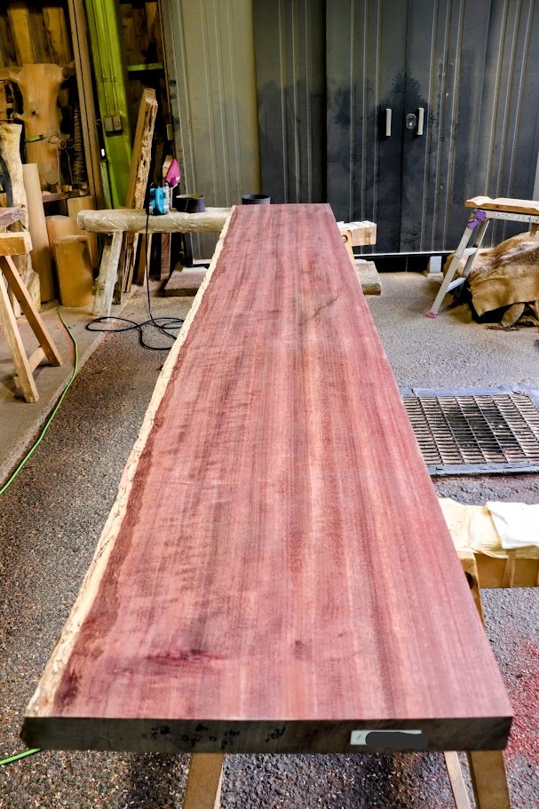 おはようございます #徳田銘木 です🌳 写真はパープルハートの一枚板です 近くで見ると、きれいな赤紫色をしています✨ #木材 #木工 #工務店 #インテリア #企業公式冬のフォロー祭り pic.x.com/UVoQRClv5X