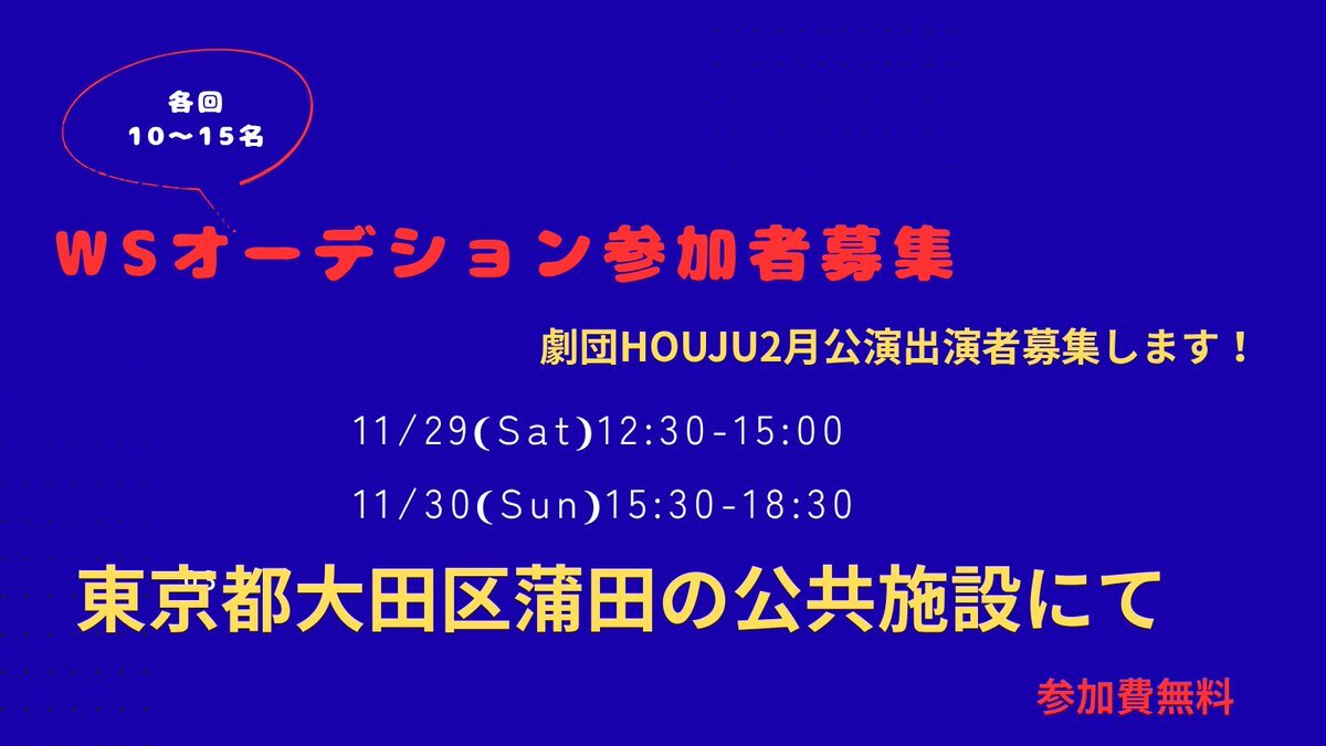 おはようございます😊 audition-match.com/251111-3/ #オーデションマッチ 12月開催WSオーデション参加者募集します!お気軽にご参加下さい😊 ⚪6日&7日共に ①15時30分〜18時②18時30分〜21時 参加費無料/東京都大田区蒲田の公共施設/劇団HOUJU2月公演出演者募集しています!