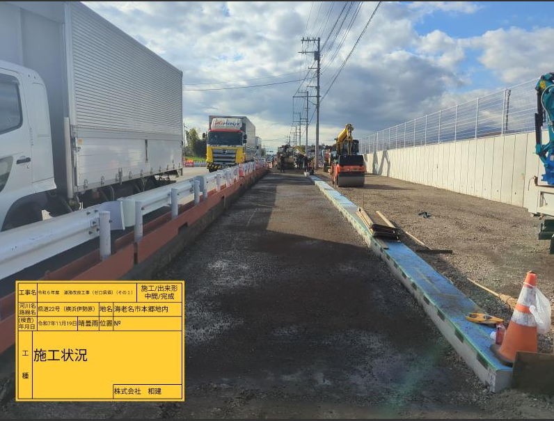 令和7年11月20日 海老名市本郷地内県道22号道路改良工事 基層施工状況 #神奈川県発注工事 #海老名市本郷 #道路改良工事 #インフラ整備 #地域貢献 #作業員募集 #現場スタッフ募集 #未経験者歓迎 #地図に残る仕事 #現場男子 #建設業のかっこよさ #土木好きと繋がりたい #神奈川で働く pic.x.com/0Vzo7f1RE2