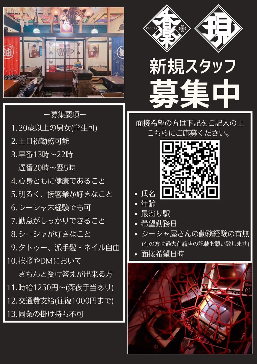 香楽からお知らせ スタッフ募集まだまだ受け付けてます🙌 シーシャが好きな方ウェルカムです🔥 記入をしてご応募ください! ご連絡お待ちしております🙇 #シーシャ #スタッフ募集 #求人  #新宿 #歌舞伎町 #未経験 pic.x.com/H89G52fa9t