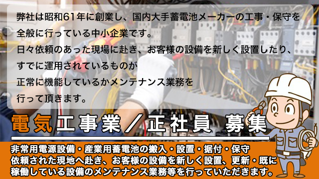 ー大阪府からの求人のご案内!ー 【会社】 有限会社高槻メンテナンス 【勤務地】 茨木市真砂 【募集】 電気工事業 【お仕事内容】 非常用電源設備・産業用蓄電池の搬入・設置 ・据付・保守 👉recmatch.com/jobs.php?id=93… #大阪府 #求人 #情報 #電気工事 #蓄電池 #茨木市 #正社員 #未経験 #スキルアップ pic.x.com/Tn6fmw7fNP