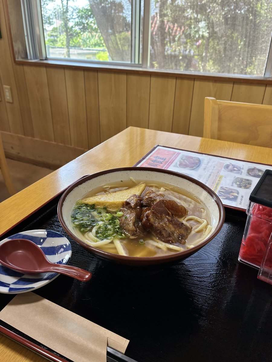 そば定食¥1400 うまい😋観光客向け古民家と思いきやしっかりした鰹豚旨味出汁のガチ沖縄そば!手揉みの不揃い麺もイイ🍜じゅーしーはほのかに胡麻油🍚マチ刺身・豆腐・ゴーヤーの和物・全部うまい!カリカリのサータアンダギーもうまし!お勧め👍 #沖縄そば #本部 #てつこのそば pic.x.com/TUQuE0YKhL