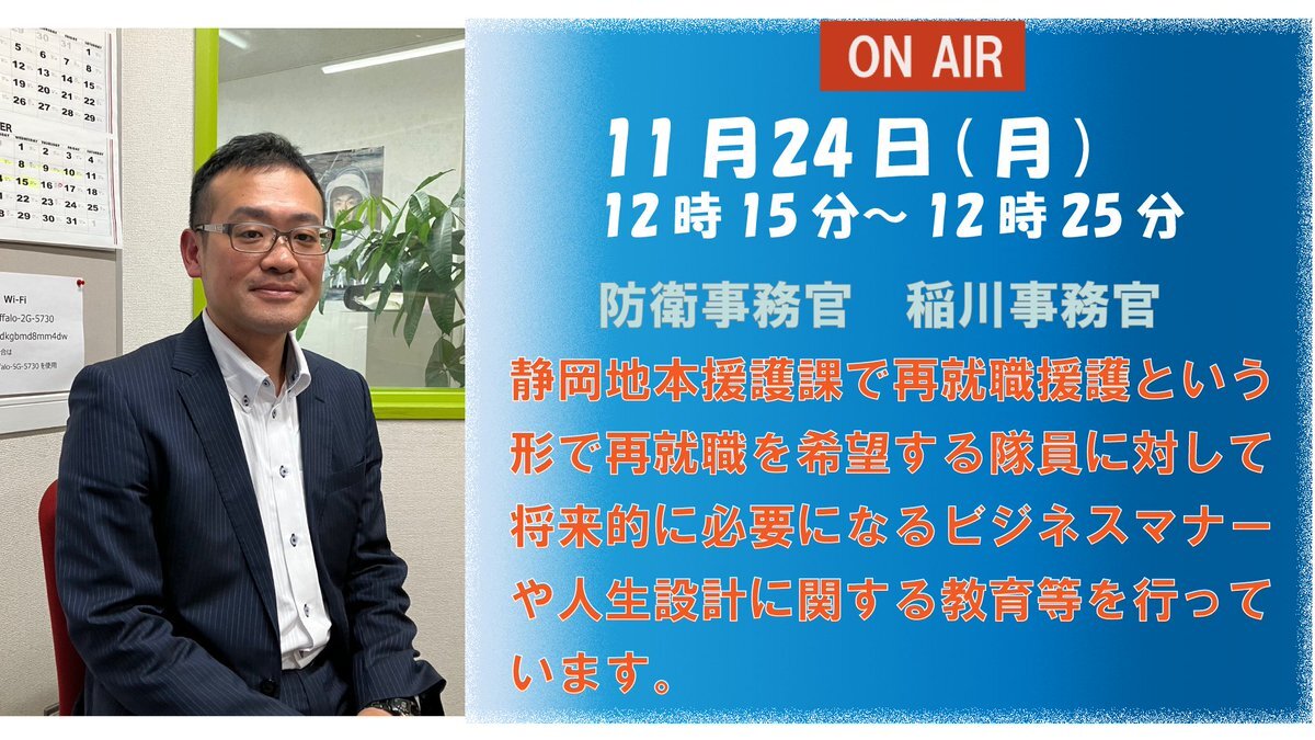 【#本部】 みんなが知らない自衛官の意外な一面を知る📻 #エフエムしみず静岡(S-Wave) 76.9MHz 「自衛TIMES静岡」 毎週月曜12ː15~12ː25 再放送木曜7ː45~7ː55 s-wave769.jp #自衛官 #静岡 #ラジオ #swave769 過去の放送は下記のリンクから聴けます😌 s-wave769.jp/backnumber/bac… pic.x.com/BuASc5LNyk