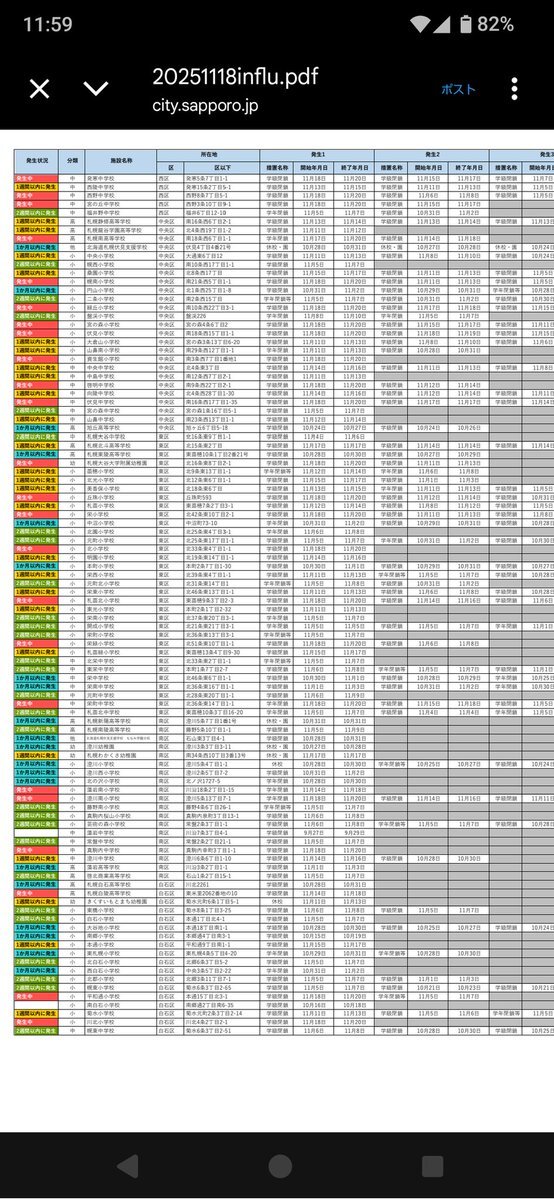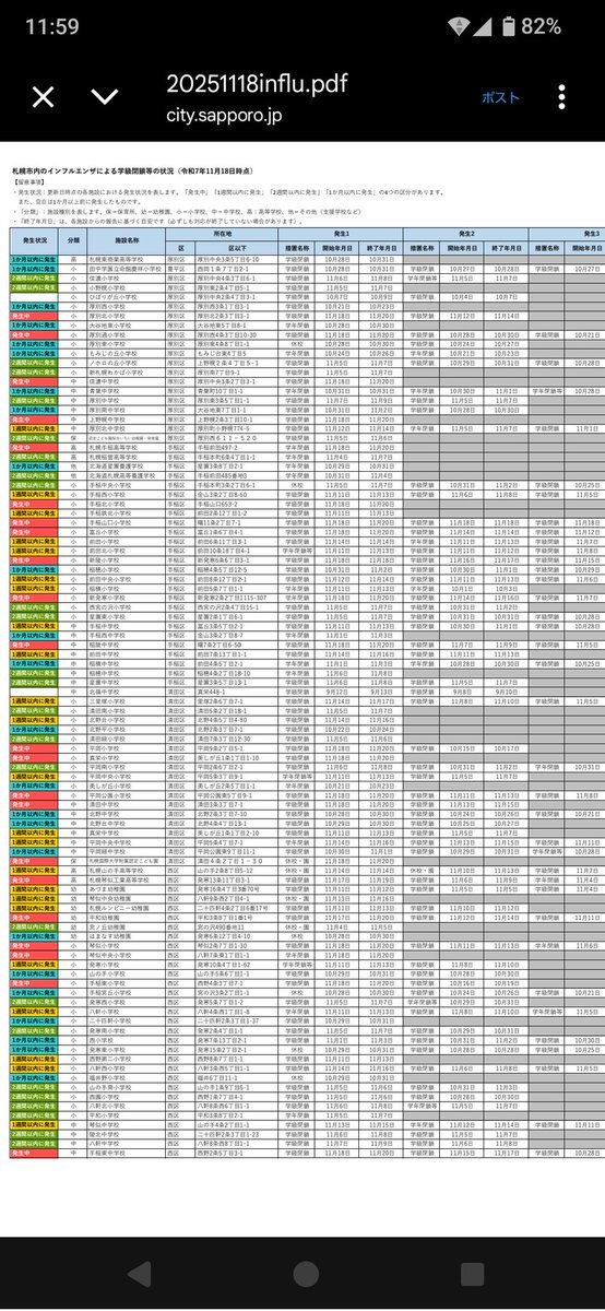 #札幌市 学級閉鎖、学年閉鎖が大量発生、#インフルエンザ 警報発令中です! 子供たちを感染症から守るためにも、皆でマスクと換気で予防を。 city.sapporo.jp/hokenjo/f1kans… pic.x.com/ajlkmzPfJ1 x.com/wagtail0203/st…