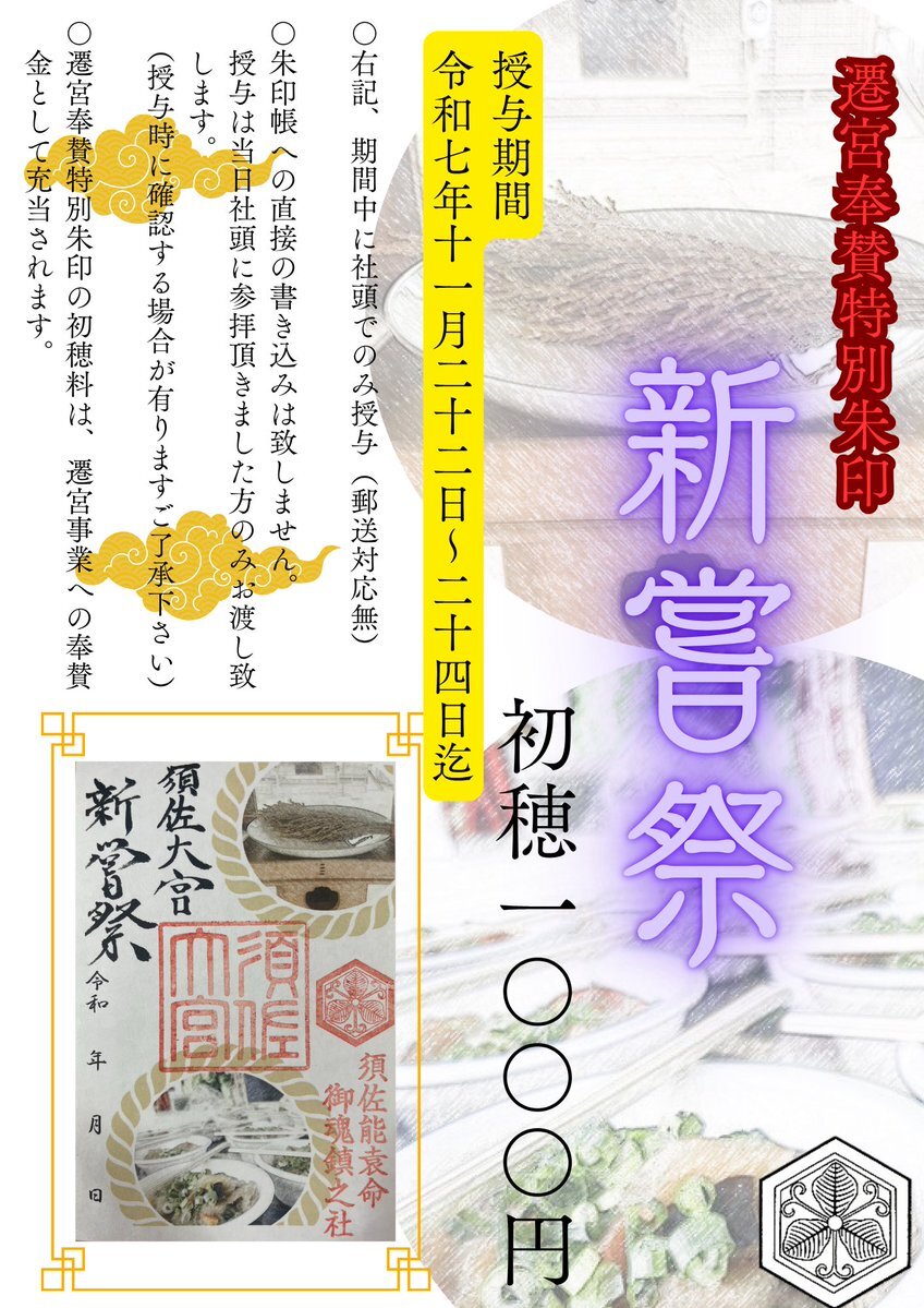 須佐神社 - お知らせ|遷宮奉賛特別朱印授与のお知らせ 新嘗祭、正遷座祭にあたり特別朱印の授与を行います。 詳しくはリンク先をご覧下さい。 #須佐神社 #朱印 susa-jinja.jp/news/130
