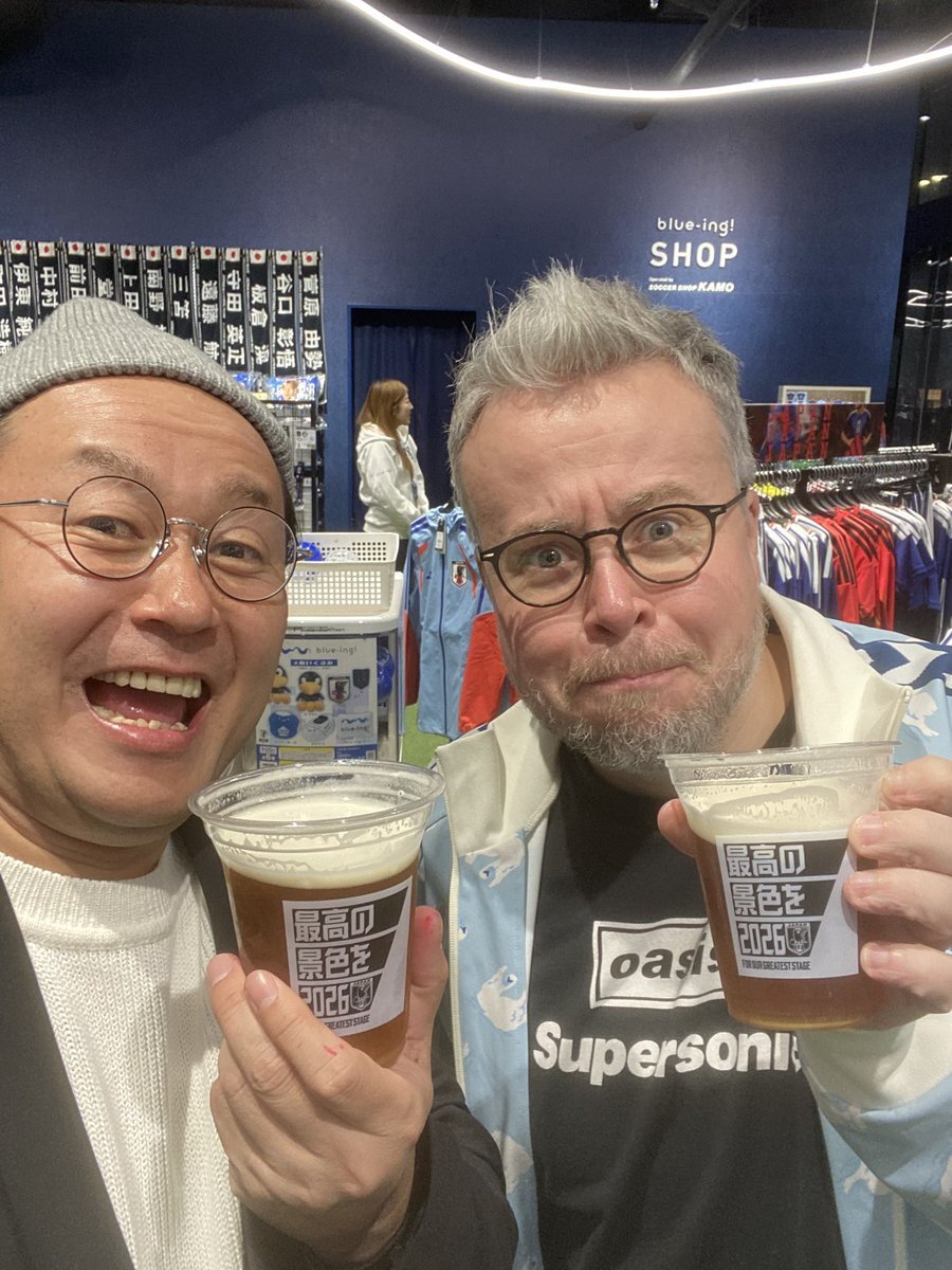 解説のベンメイブリーさん 今日もお疲れ様でした🎙️ 恒例のチアーズ!🍺 今シーズンもよろしくです!⚽️ #FC26 #FCコミュニティシリーズ #ブルーイング #東京ドームシティ pic.x.com/iSXQrJsT3z