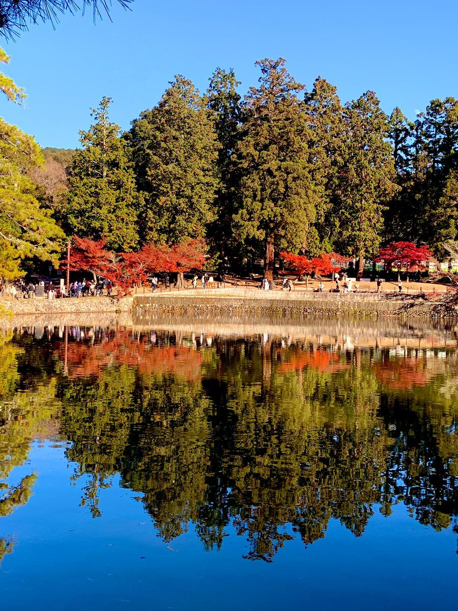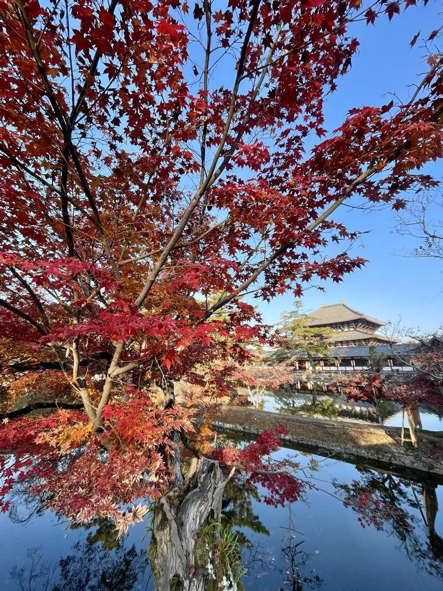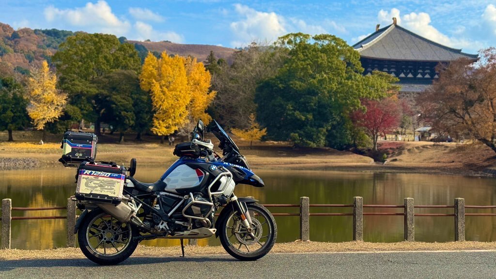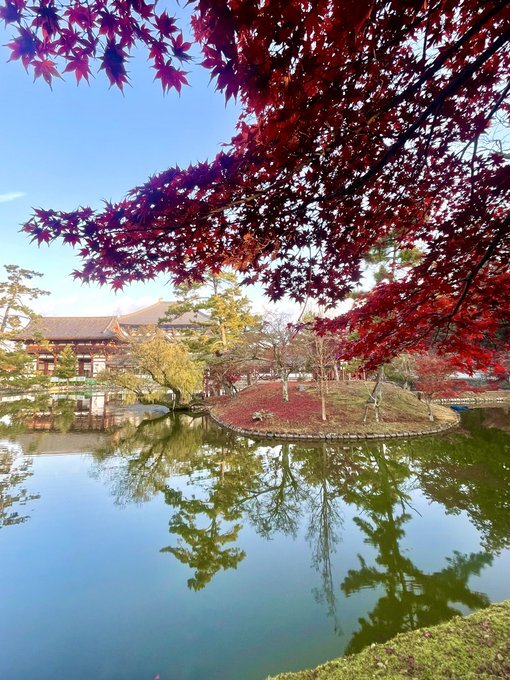 これが奈良 こんなん京都では撮れんよな⁉️ 散ってもーたな。🍁 焼き鳥釜飯ツーリング🏍️ スタート #奈良推し #定点観測 #古都奈良の世界遺産 #東大寺 #大仏池 #R1250GS #奈良は美しい😍 pic.x.com/LlQRzy7V0i