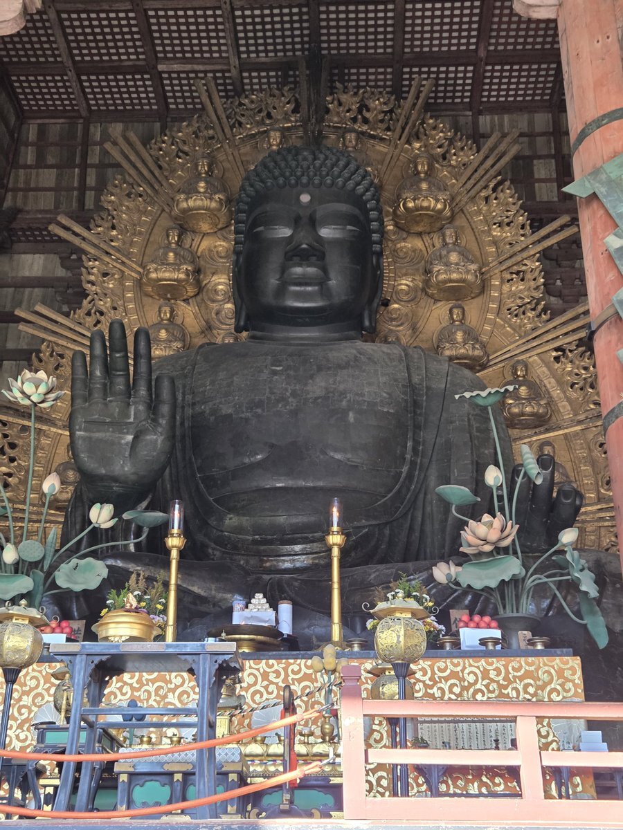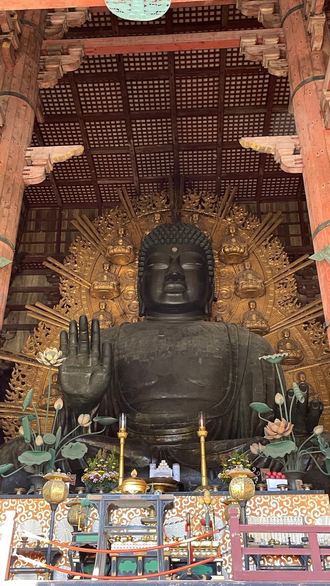 今回は特急まほろば、悠久編成で奈良へ。久しぶりに奈良の大仏さんを拝めました。右手の立てた掌はこわくないよと安心させるもののようです。 #特急まほろば #悠久編成 #東大寺 pic.x.com/hqHm1VDIL3