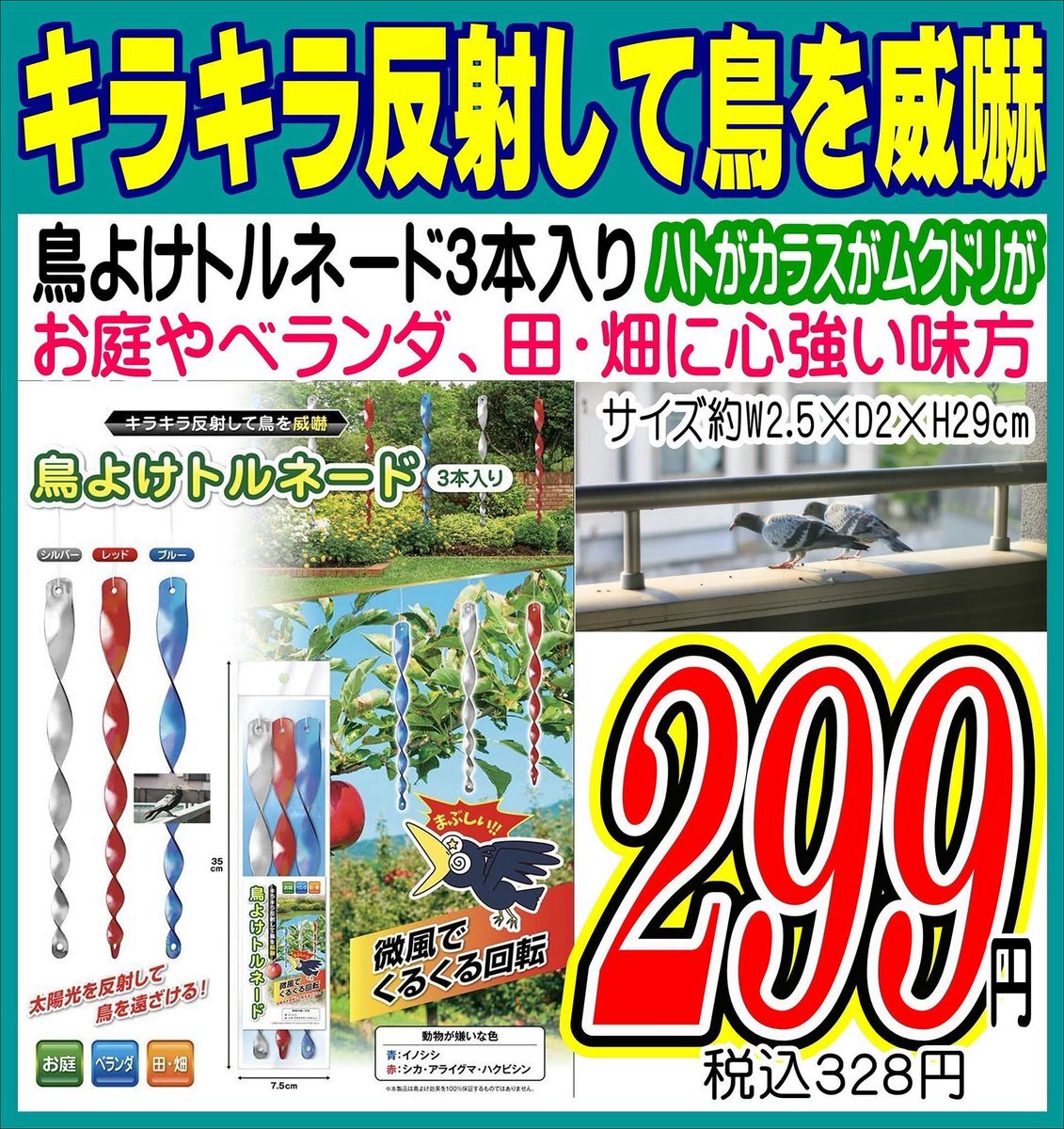 鳥よけトルネード3本入り キラキラ反射して鳥を威嚇 3本セットになった鳥よけ棒です 微風でくるくる回転することで太陽光を反射し、目の良い鳥たちを遠ざけます お庭やベランダ、田・畑に心強い味方 #鳥よけ #鳥被害 #ベランダ #マンション #アパート #果実被害 #ジムラッキー #上新庄 #東淀川 pic.x.com/hBpvlFqqQb