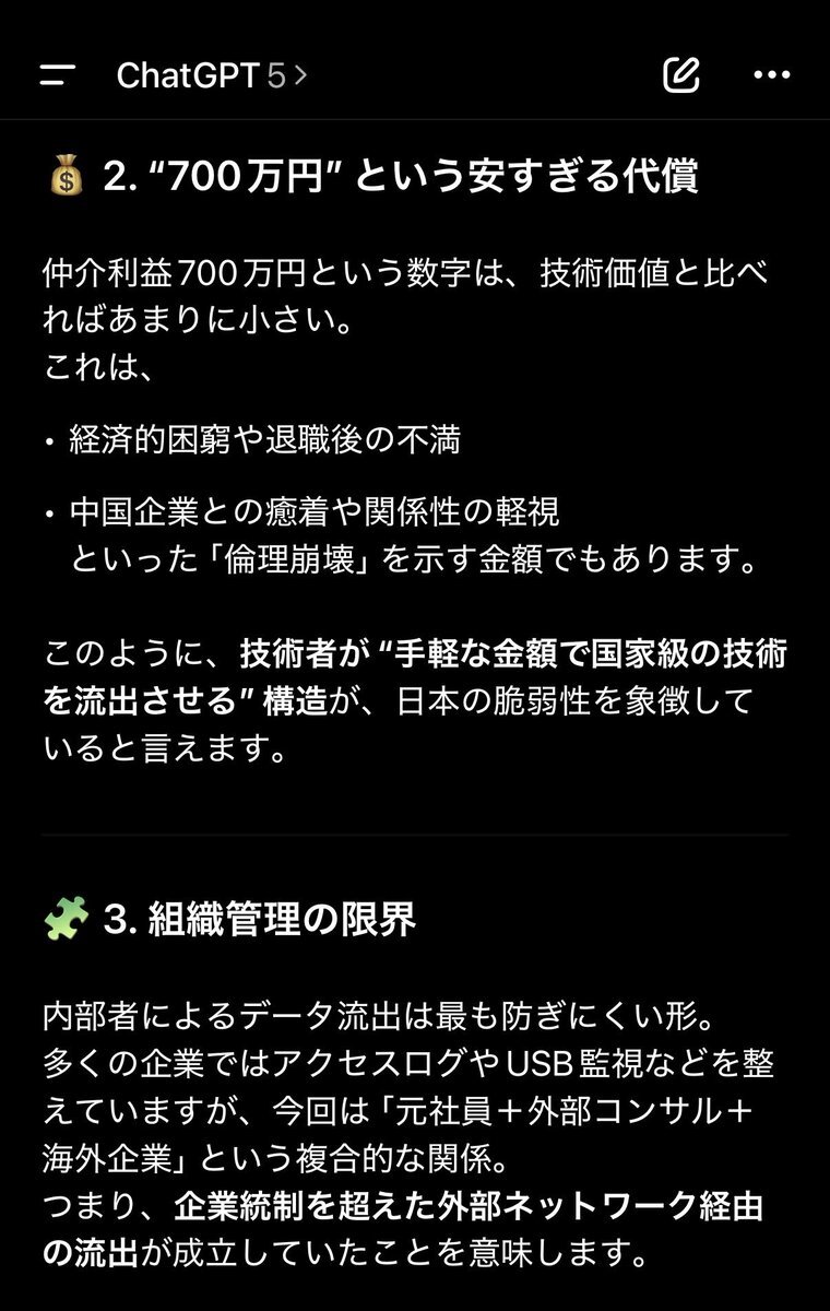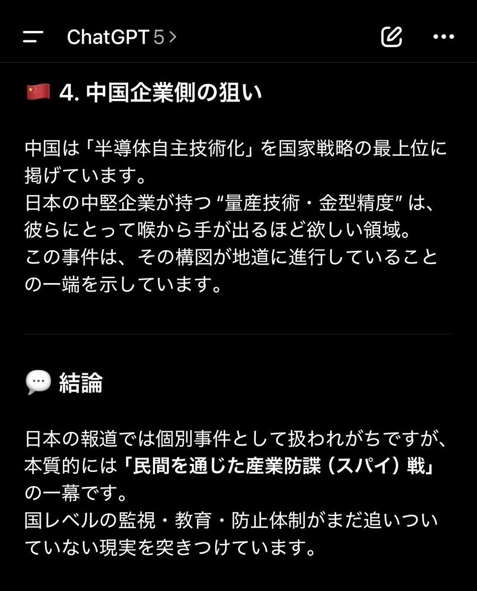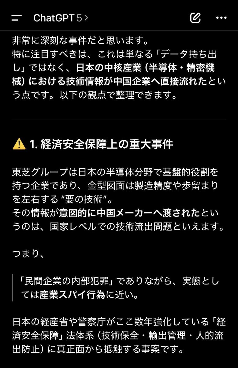 返信先:@Sankei_news東芝系企業の金型データが中国へ流出。 仲介利益はたった700万円。 半導体製造の根幹技術が、そんな安値で売られてしまう国になったのか。 これは単なる不正ではない。 日本の技術が「金と油断」で抜かれていく現実。 経済安保の抜け穴は、内部にある。 #東芝 #技術流出 #経済安全保障 #中国 pic.x.com/CQwvt0sdOA