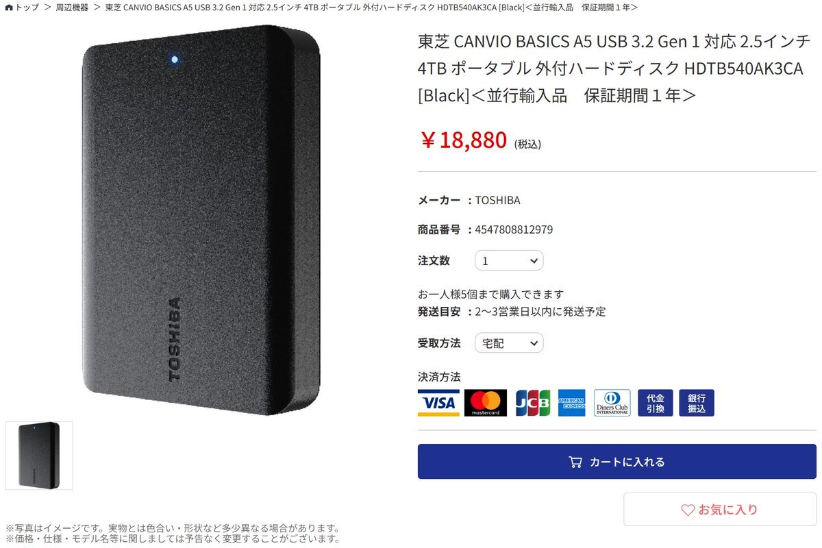 ⭐️オススメ商品紹介⭐️ 東芝ブランド 2.5インチポータブルHDD 4TB 🔗www1.pcdepot.co.jp/products/detai… CANVIO BASICS A5 HDTB540AK3CA USB3.2(5Gbps)接続の小型大容量のHDD 大量の大容量データの持ち運びやバックアップなどに❗️ #TOSHIBA #東芝 #外付けHDD #ポータブルHDD pic.x.com/eYUxwzfgKi